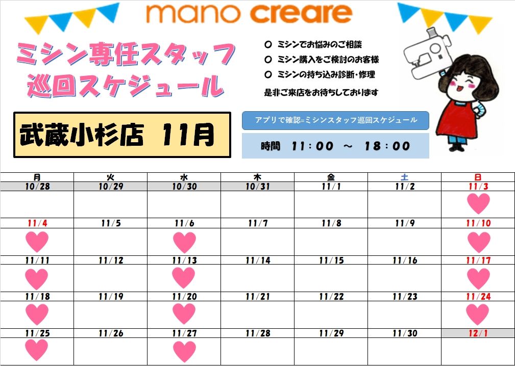 ✳︎実施日はミシン専任スタッフ巡回日です