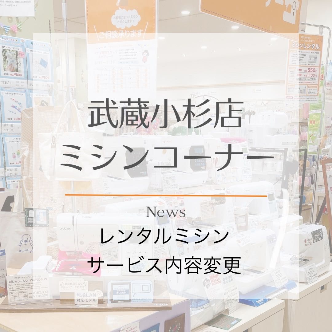 【武蔵小杉店】レンタルミシンサービス内容変更のお知らせ