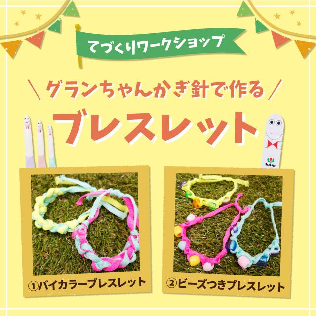 初心者でも、簡単にかぎ針編みができるグランちゃんで、楽しくブレスレットを作りましょう!
