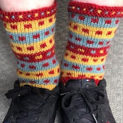 オカダヤオリジナルのDaily yarnから「メリノウール」を使った鮮やかな配色のレッグウォーマーです!