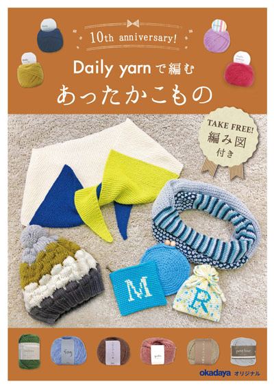 そんな「Daily」シリーズ編み糸の10周年を記念し、作品5点の編み図を掲載した冊子をオカダヤグループ店舗・オンラインショップにて無料配布中!