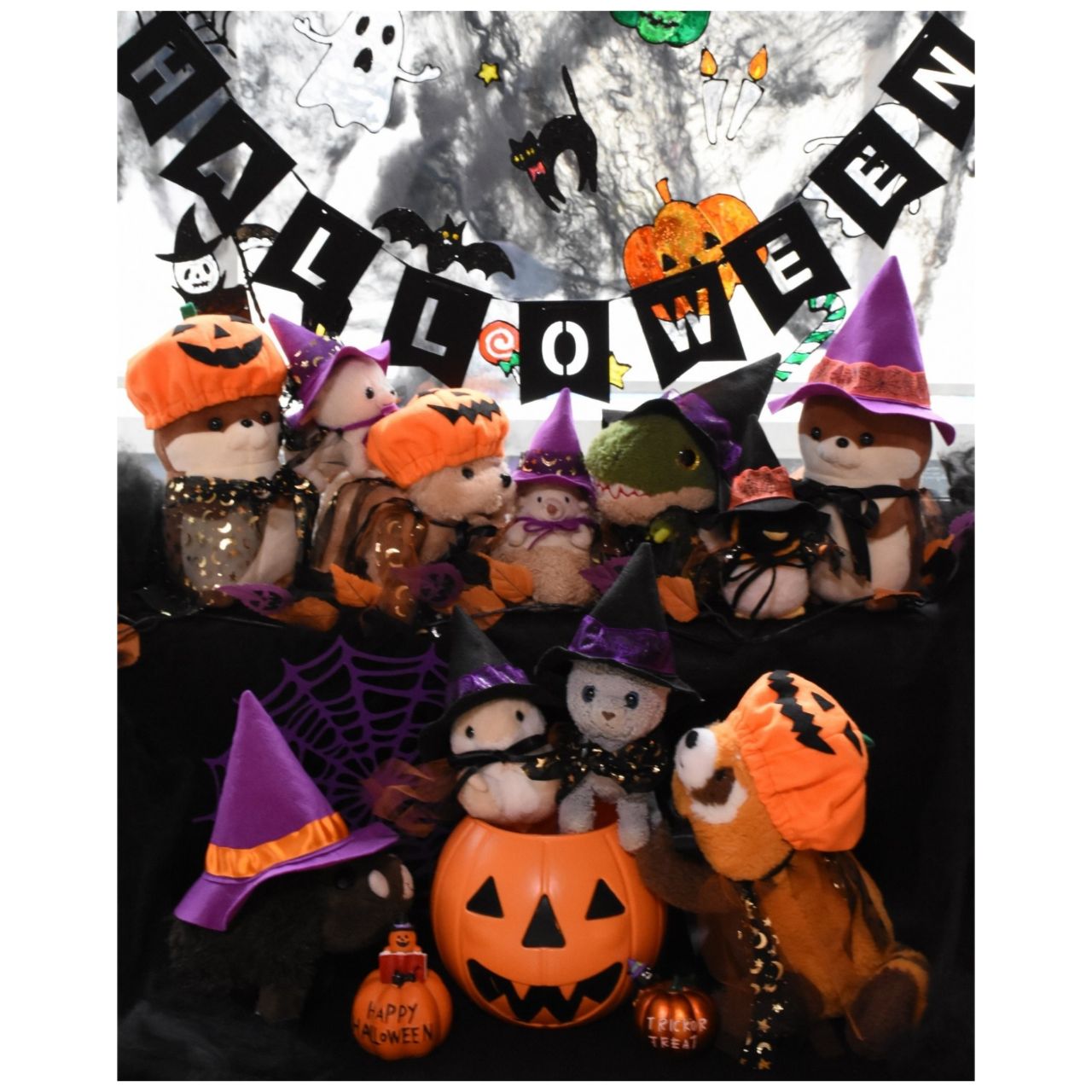 ハロウィンの素敵なお帽子とマントを身につけたぬいぐるみちゃんが大集合!