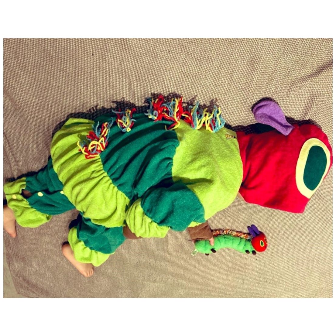 テクノロート入りの触覚と背中の毛糸に拘りを感じました!ポーズもあおむしとお揃いでとっても可愛いです♪たくさんたべてよくねて寝顔大きくなってほしいですね!