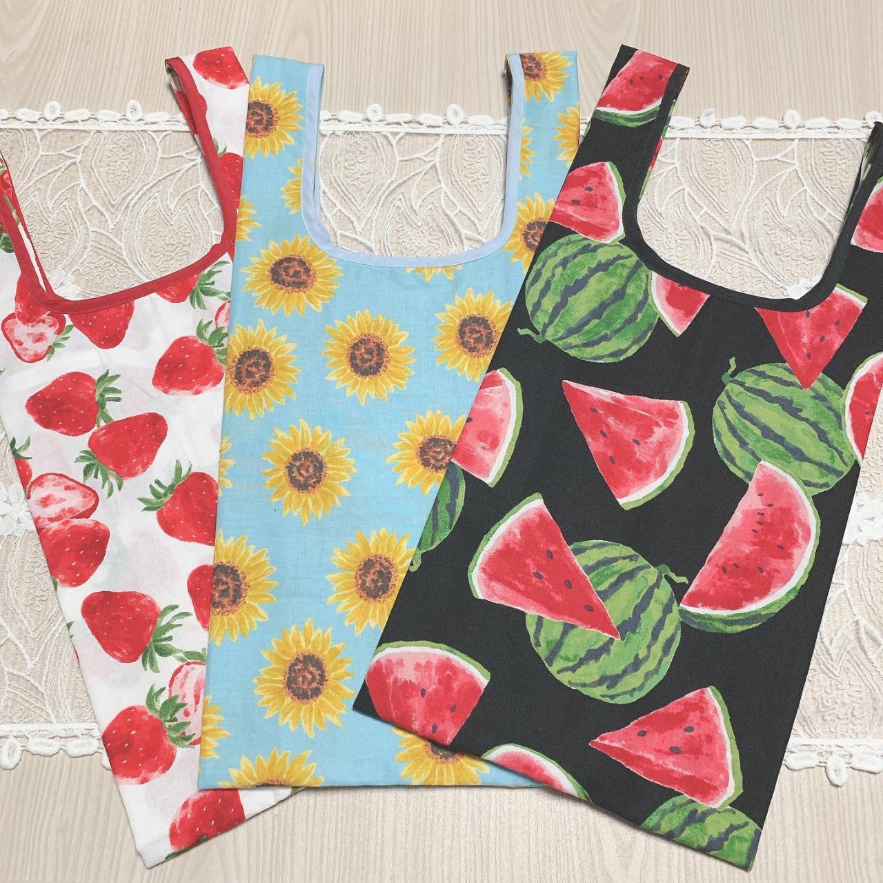「友達の分と合わせて、それぞれが好きな柄の布でエコバッグ作った(^^)」