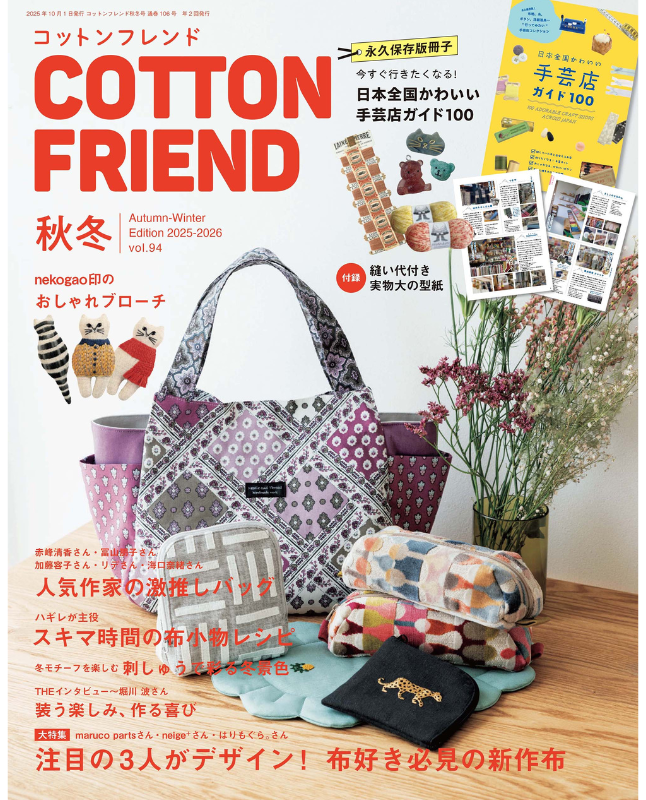 2025年9月5日発売の雑誌「コットンフレンド2025年秋冬号Vol.94」 に、新宿オカダヤ本店が紹介されています。