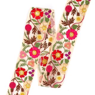 インド刺繡リボンは、華やかな柄や色使いが特徴で、洋服の装飾、着物の半襟、アクセサリー作りにもぴったりです!