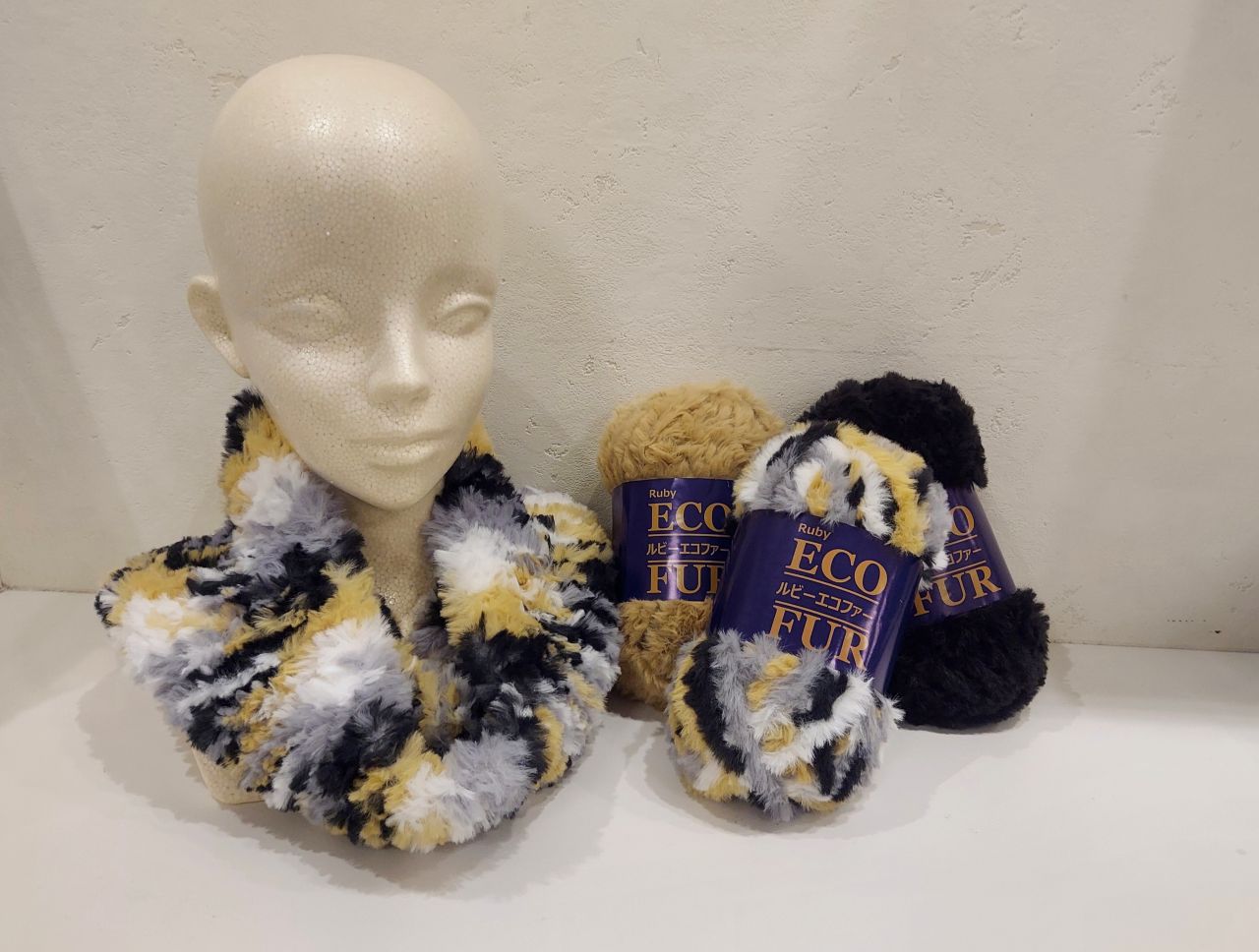 こちらは軽くて風合いも良い太番手のファー毛糸。