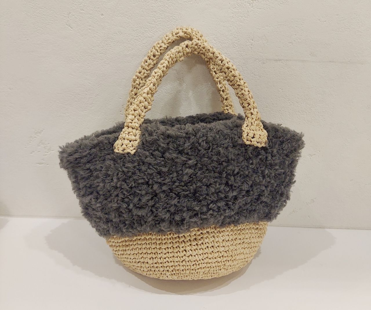 こちらはエコアンダリヤとメリノウールファー1玉ずつでできる、もふもふお散歩バッグです。