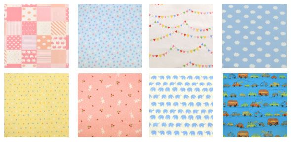 ブロード生地だから、初心者にも縫いやすく、やさしい風合の柄ばかり!