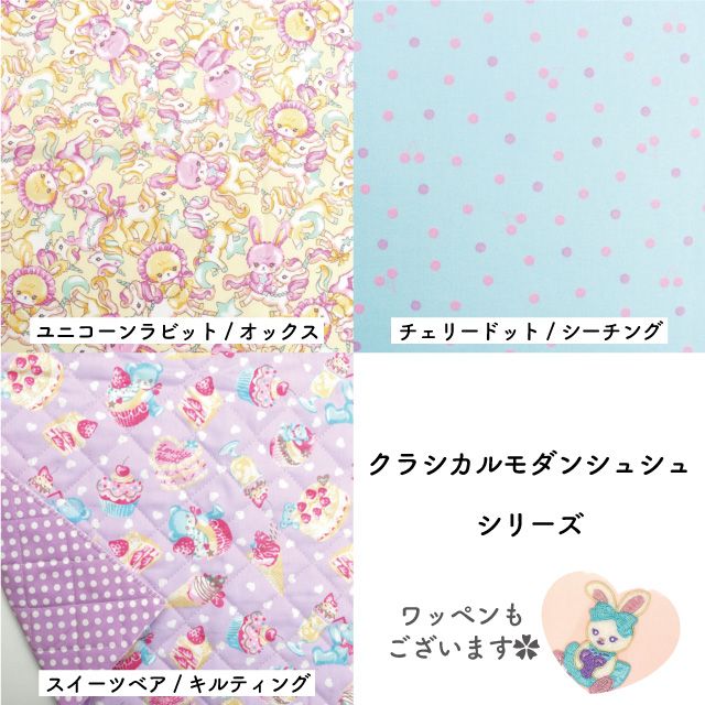 左下:生地 クラシカルモダンシュシュ スイーツベア/キルティング(CMCF-12Q) V.ヴァイオレット