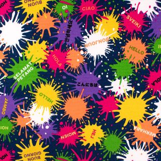 世界の「こんにちは」の言葉ととペイントを柄を組み合わせたデザインです。
