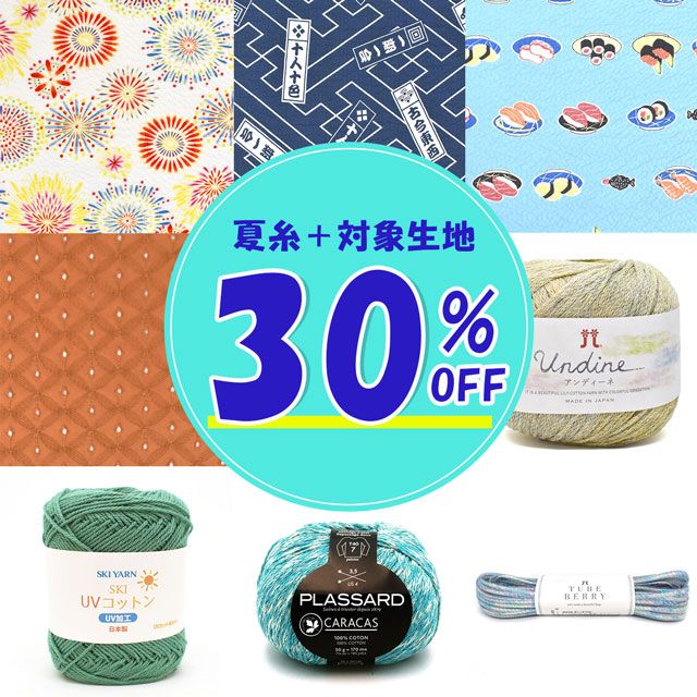 これからの季節にすぐ活用できる夏糸と生地が30%OFFでご購入可能!