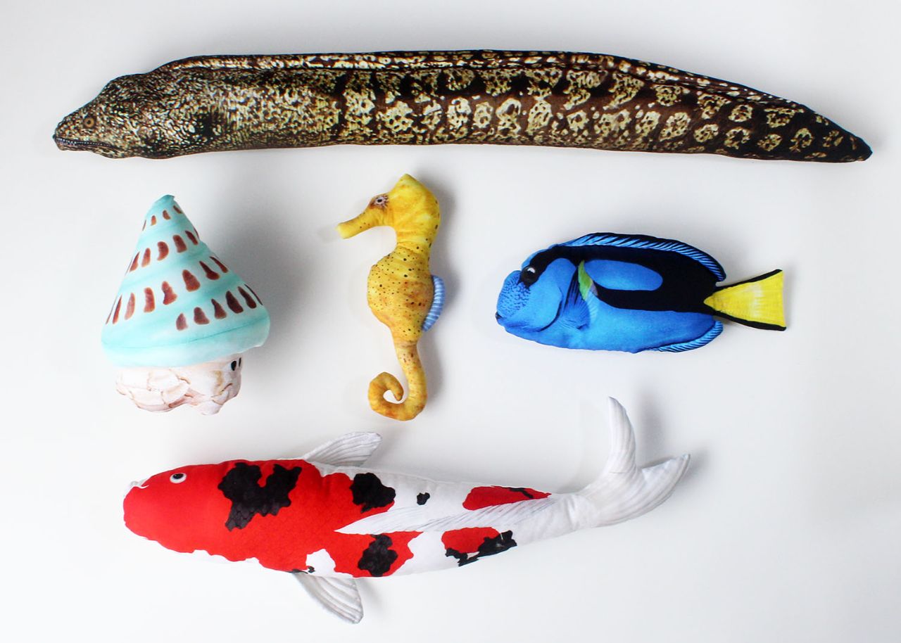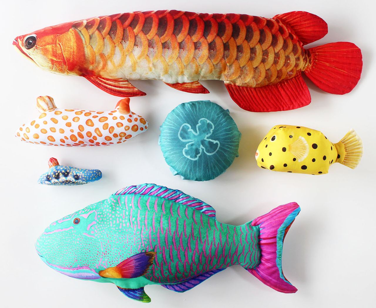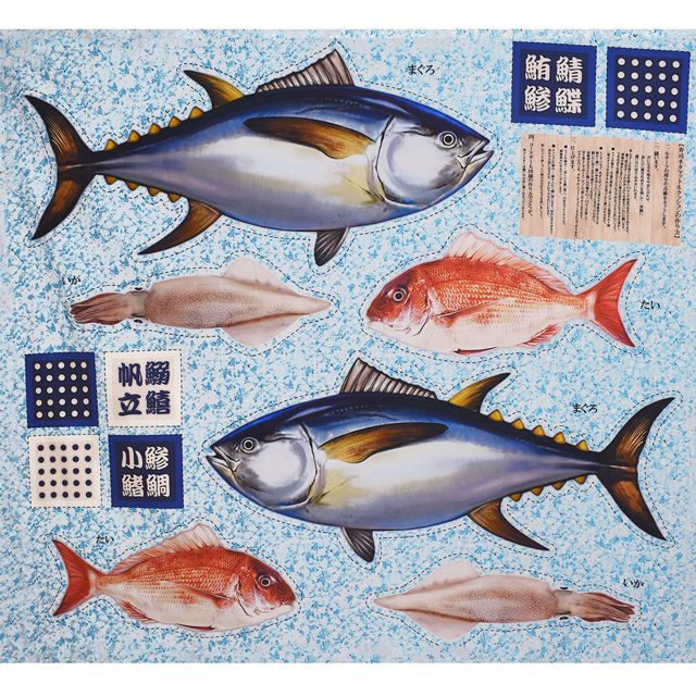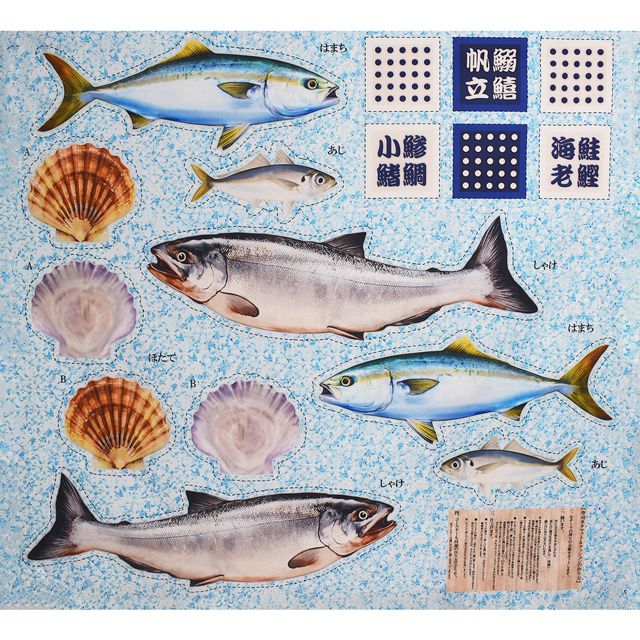 縫い合わせるだけで魚のクッションができるパネル生地です。