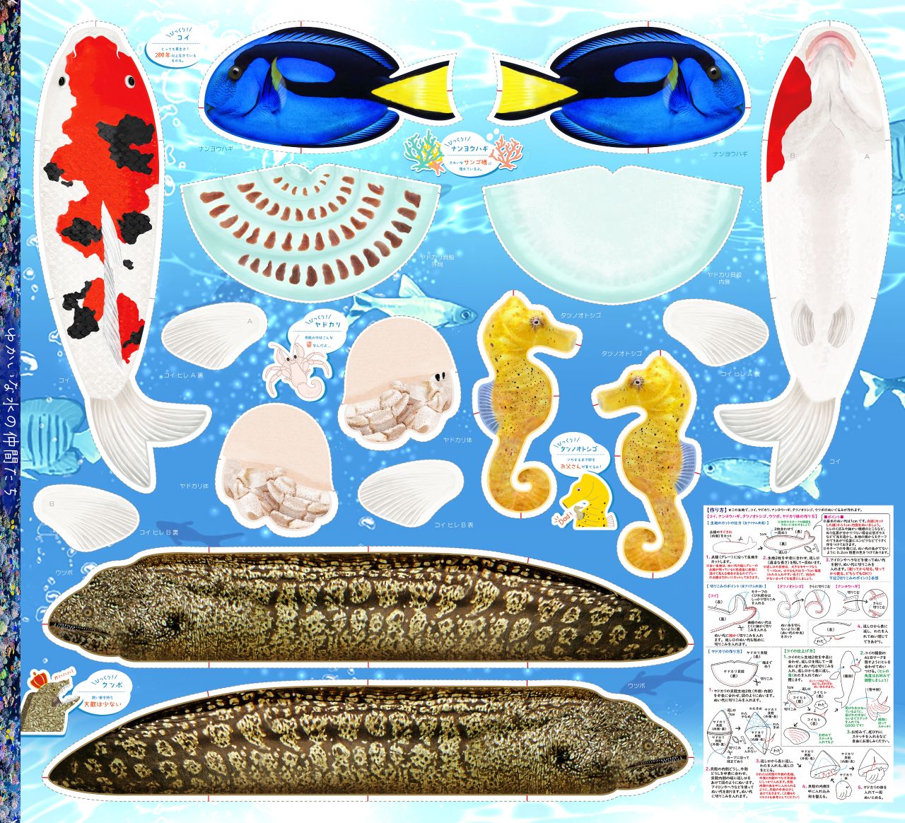 淡水と海水、両方の「仲間たち」が集合したパネル生地です