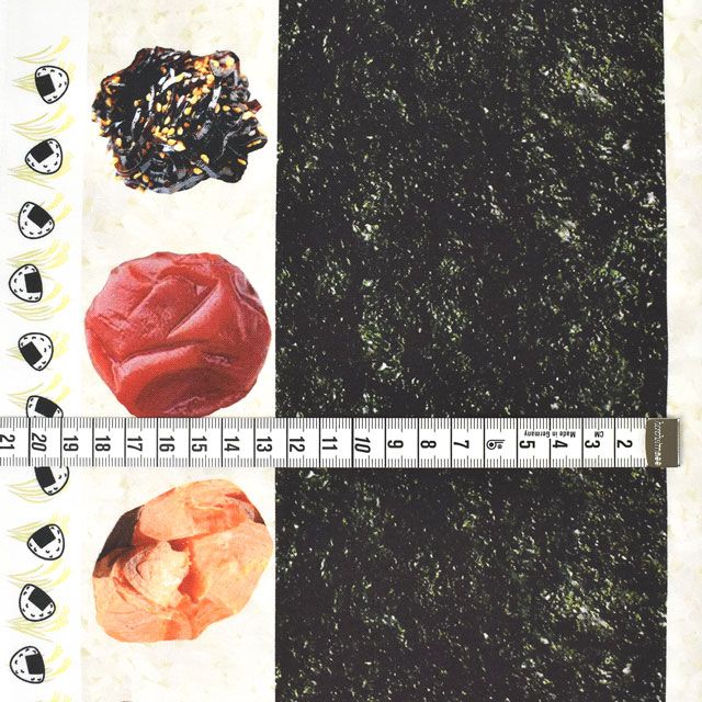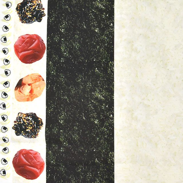 炊きたてご飯や海苔、具材をリアルにプリントし表現したコットン生地です。