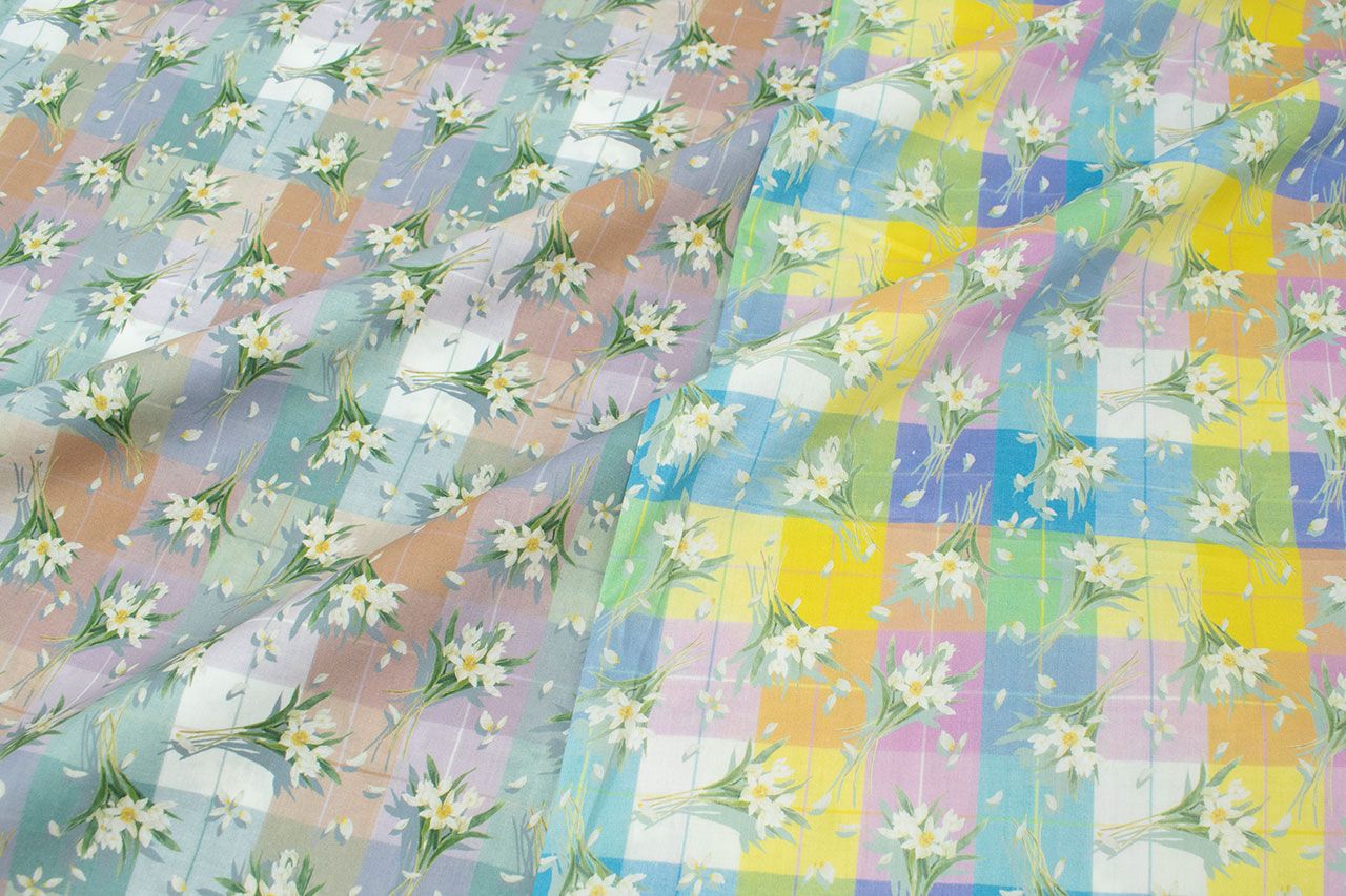 人気のチェックに水彩柄のお花をちりばめた立体的な美しい柄