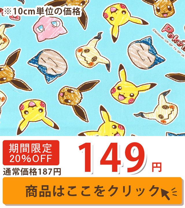 大人気キャラクター「ポケモン」の新柄生地が入荷しました。