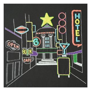 夜空に映えるネオンやライトのようなぴかぴかとした輝きを表現した刺繍糸で、