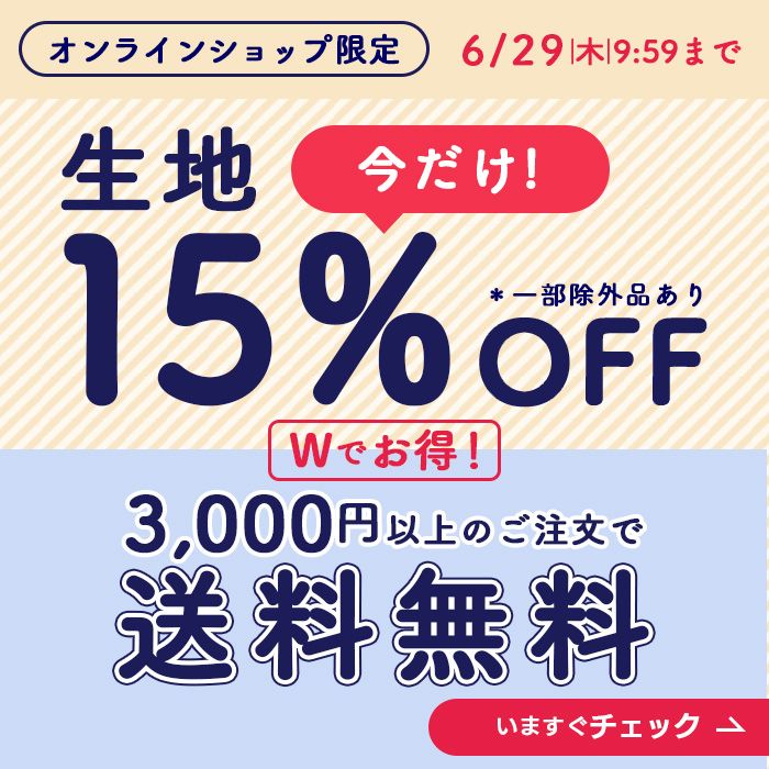 【6月29日09:59まで】\今だけ/生地15%OFF&3,000円以上送料無料キャンペーン開催!オカダヤオンラインショップ
