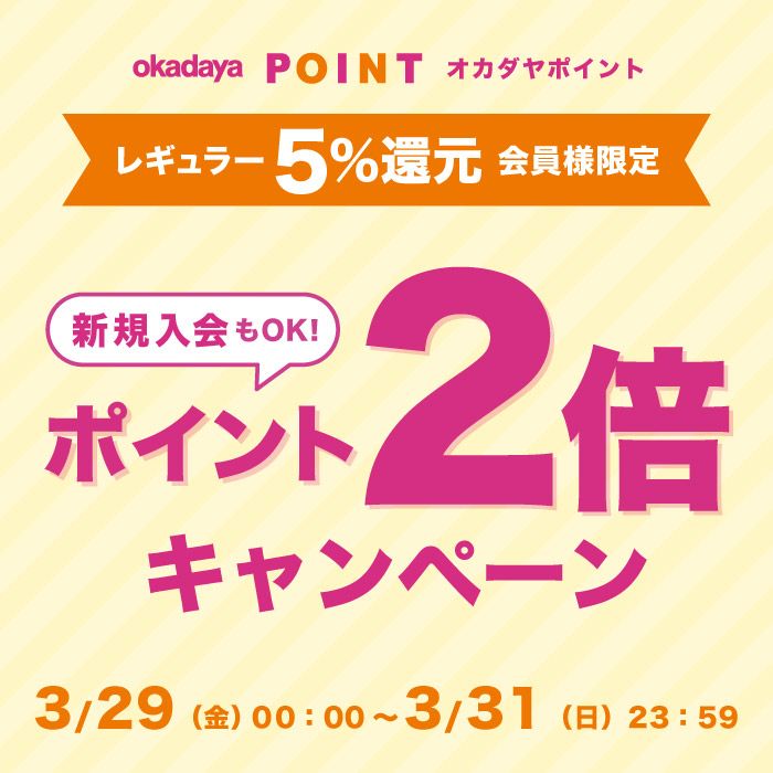 【3/31(日)23:59まで】\3日間限定/レギュラー会員様ポイント2倍キャンペーン開催!オカダヤオンラインショップ