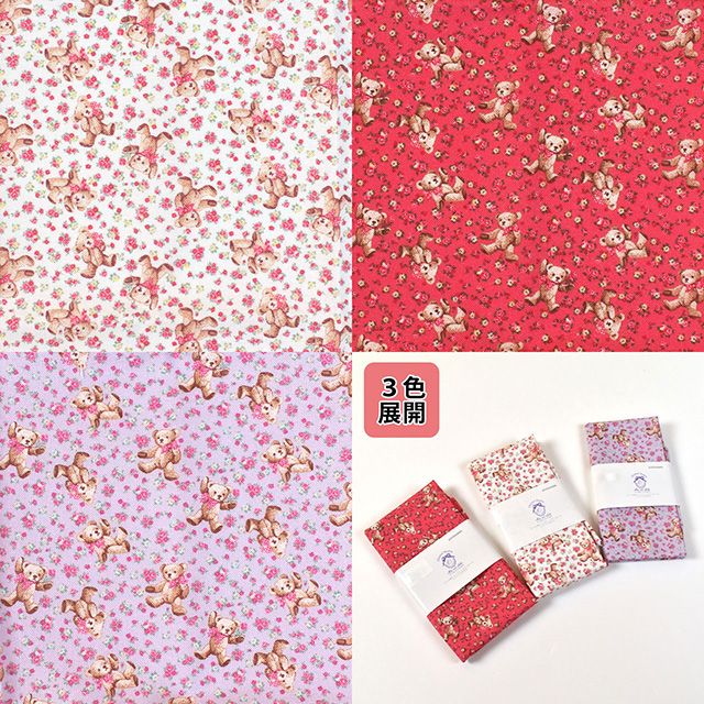 テディベア風のくまちゃんと小花が散りばめられた、可愛いデザインです。