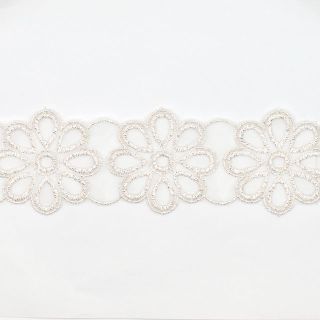 オーガンジー生地に上品な色味のラメ糸でお花を刺繍した愛らしいモチーフレースです。