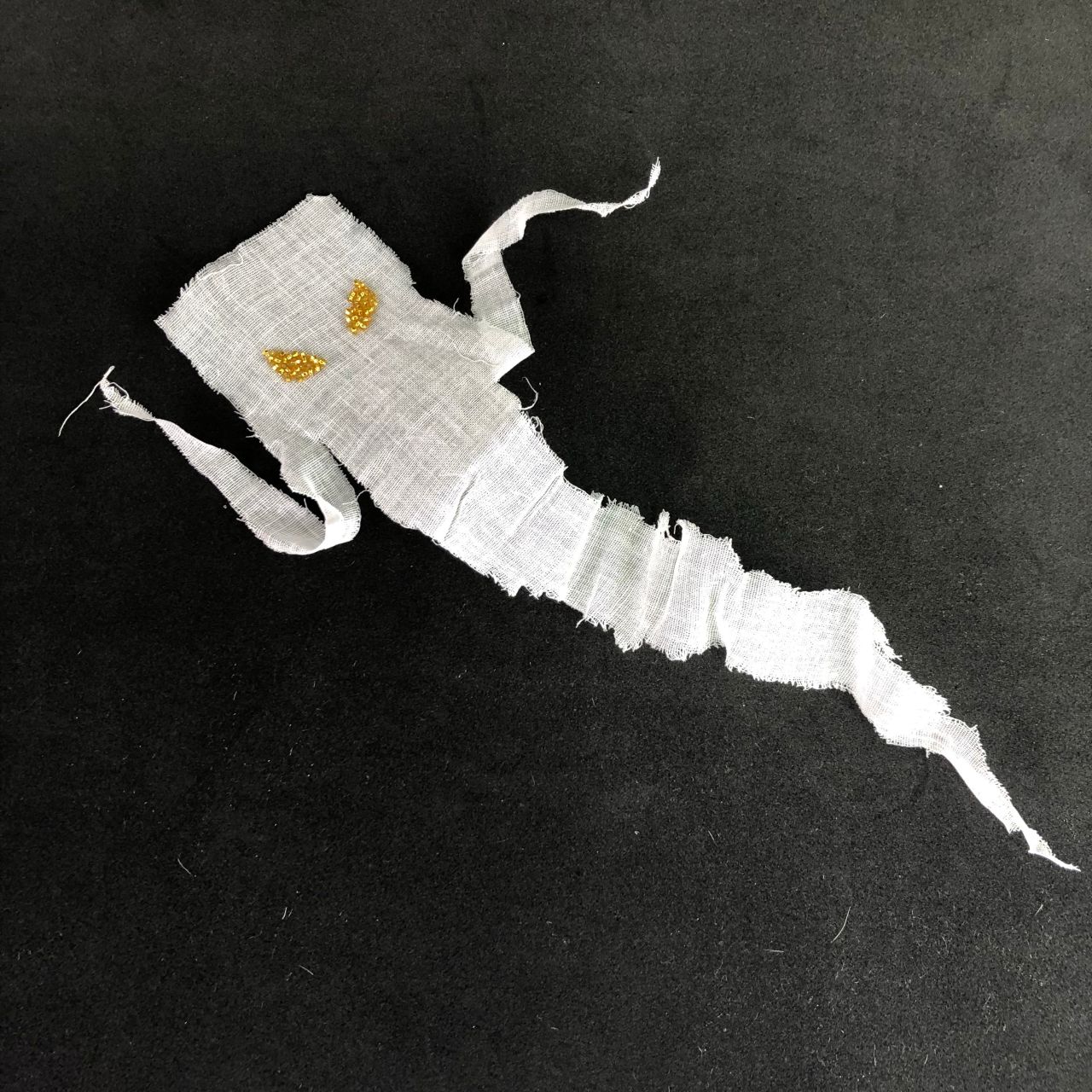 【1】ガーゼをおばけの大きさに合わせて適当な長さにカットします。