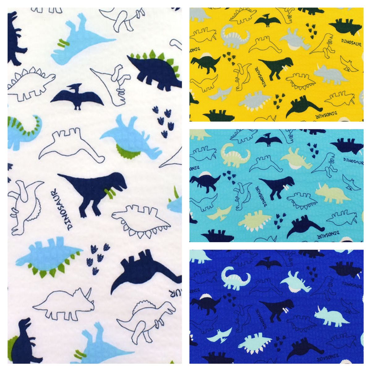 【生地 リップルプリント 恐竜(38090) 5A.ホワイト】