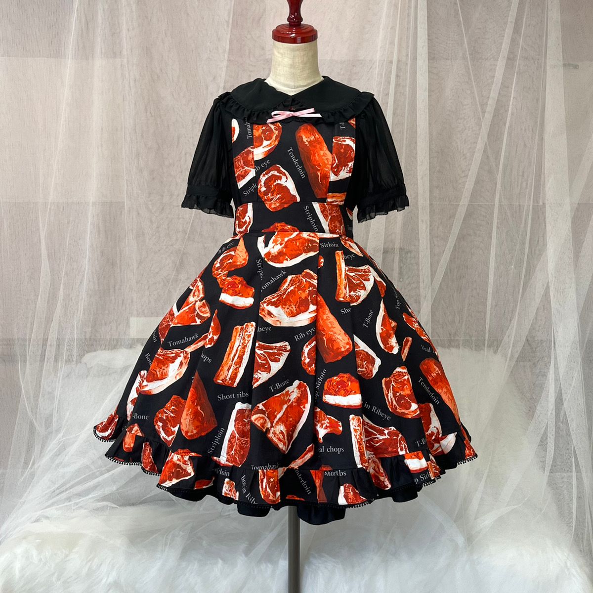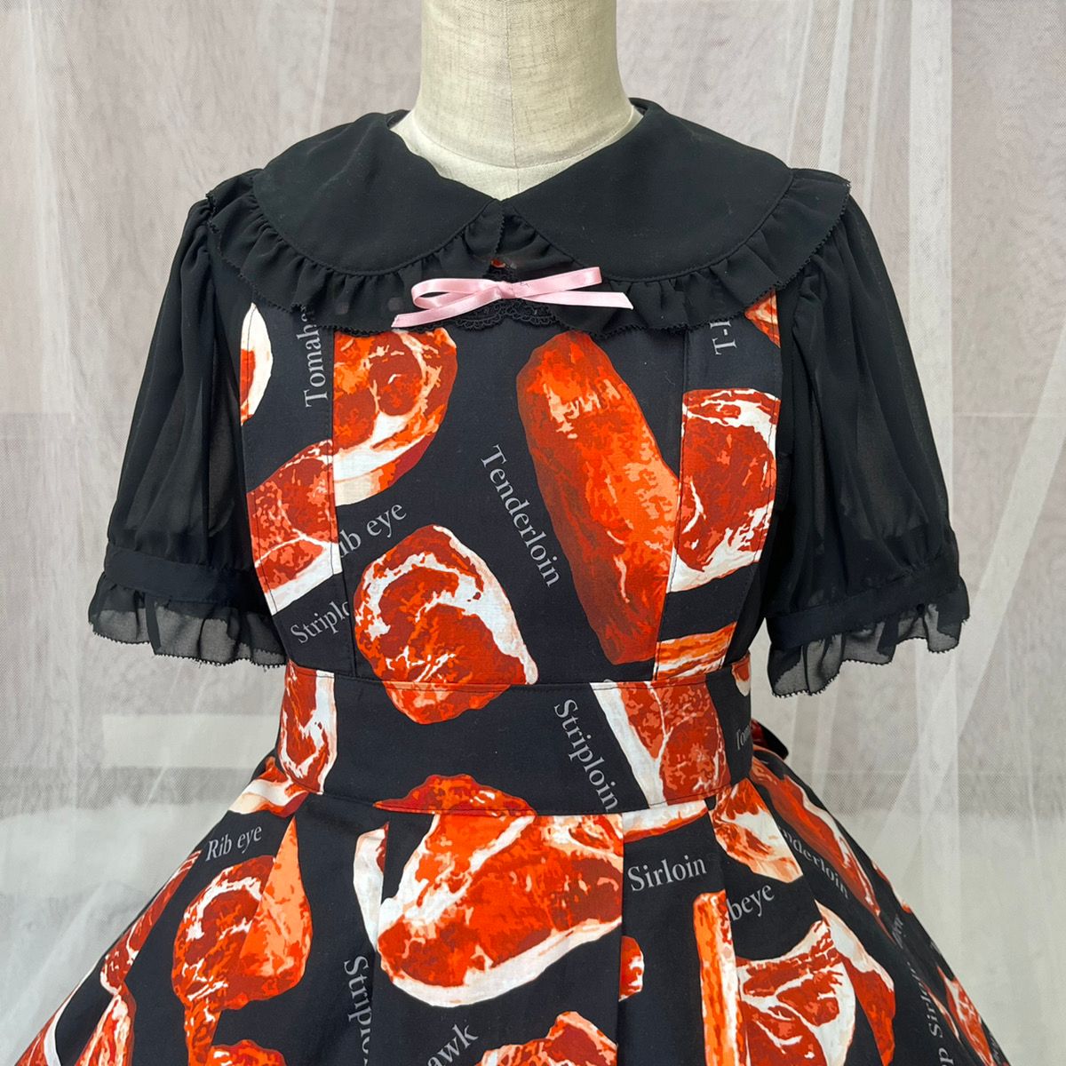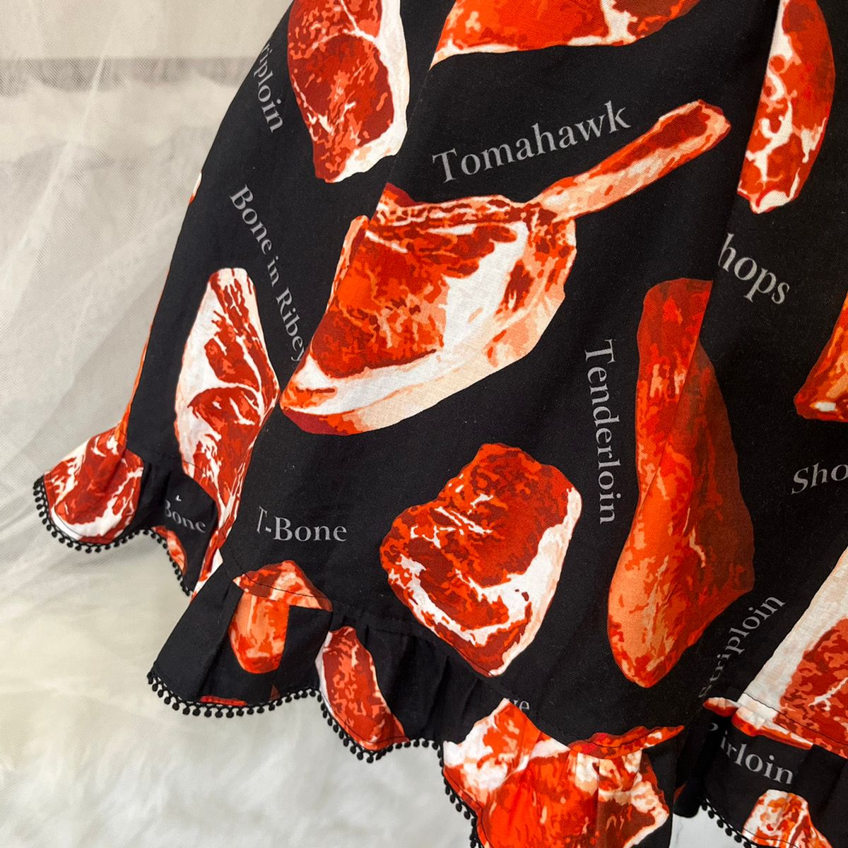「生地 デジタルプリント リアル肉・大(YMC-MEAT-1) BLACK」を使って製作しました!