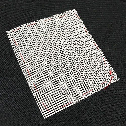 1、図案より一回り大きいサイズの抜きキャンバスを、クロスステッチをしたい部分に