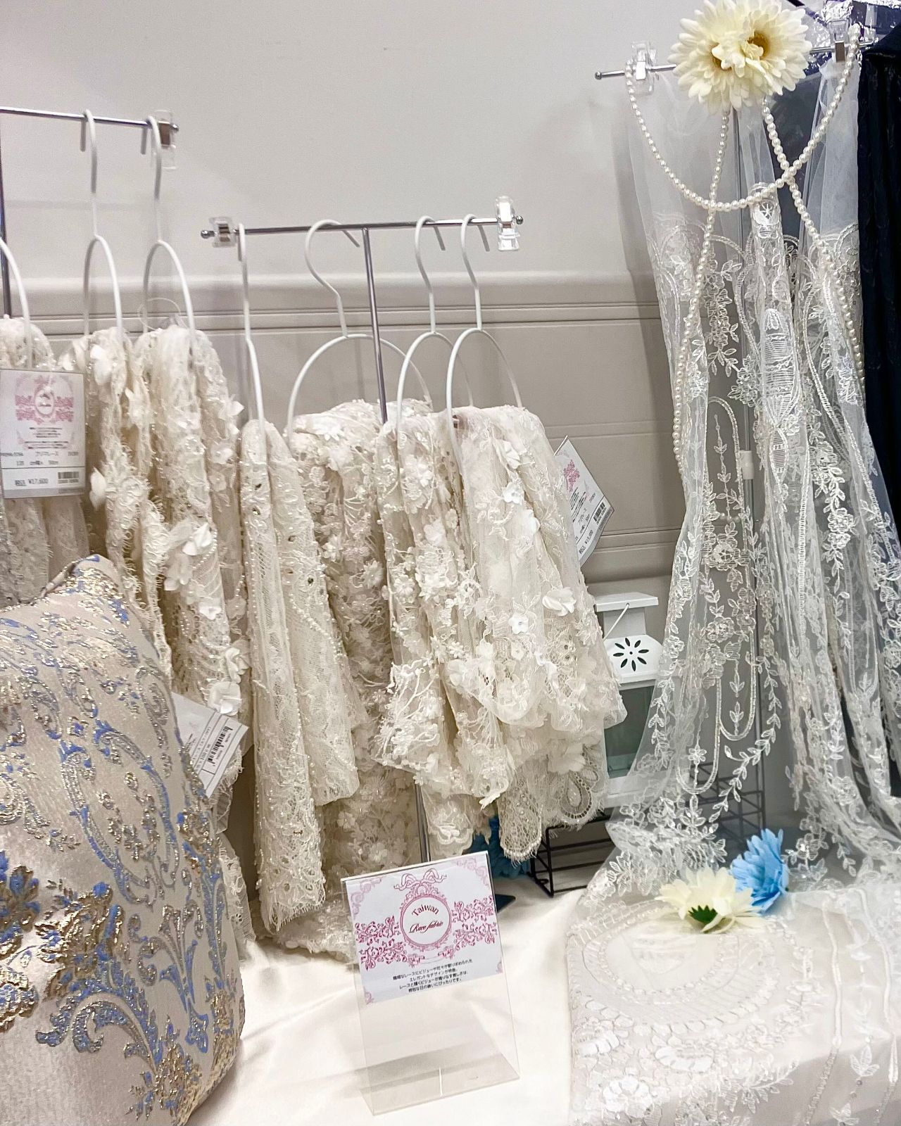 台湾のレースは繊細なレースにビジューや花々が散りばめられたエレガントなデザインが特徴です。