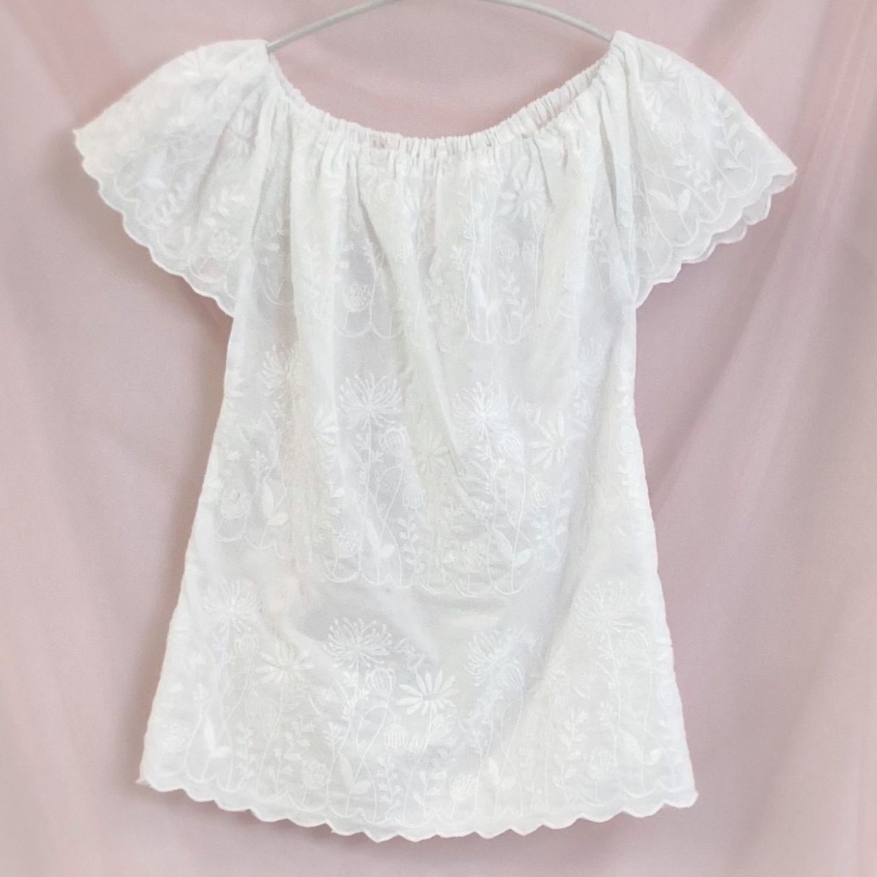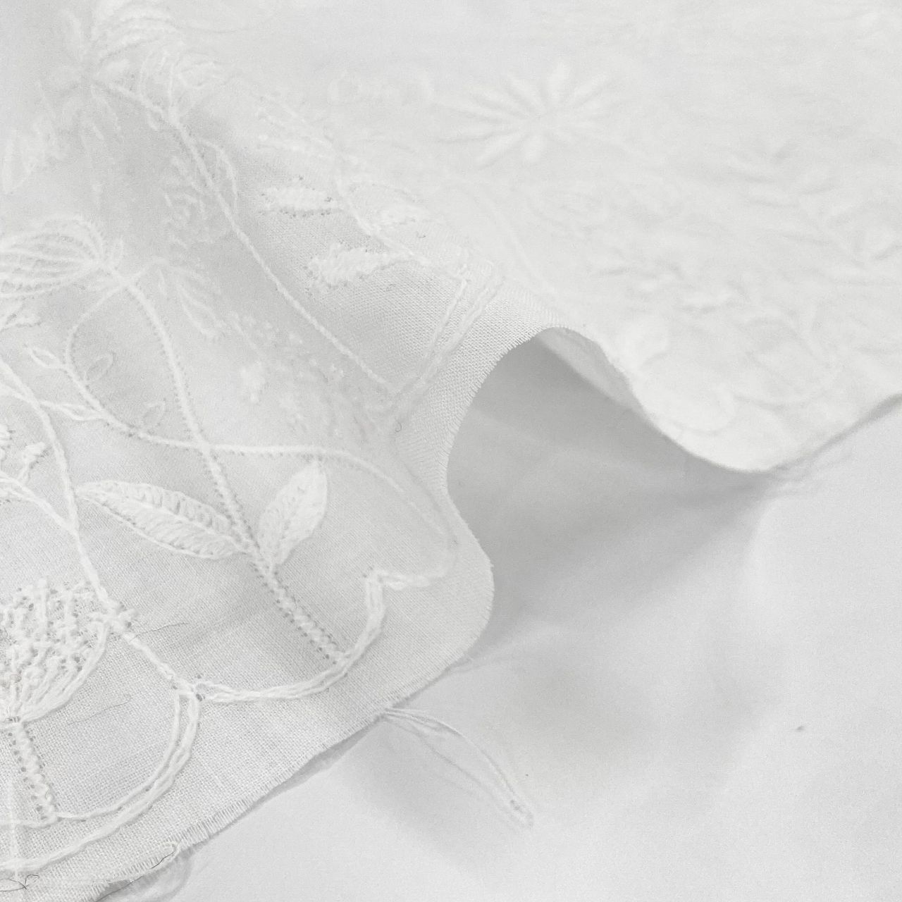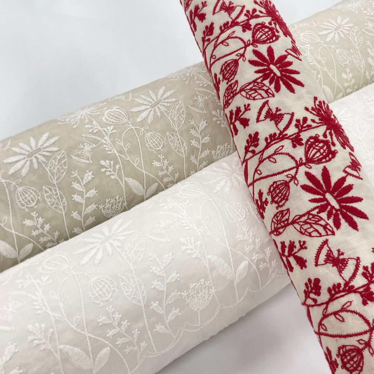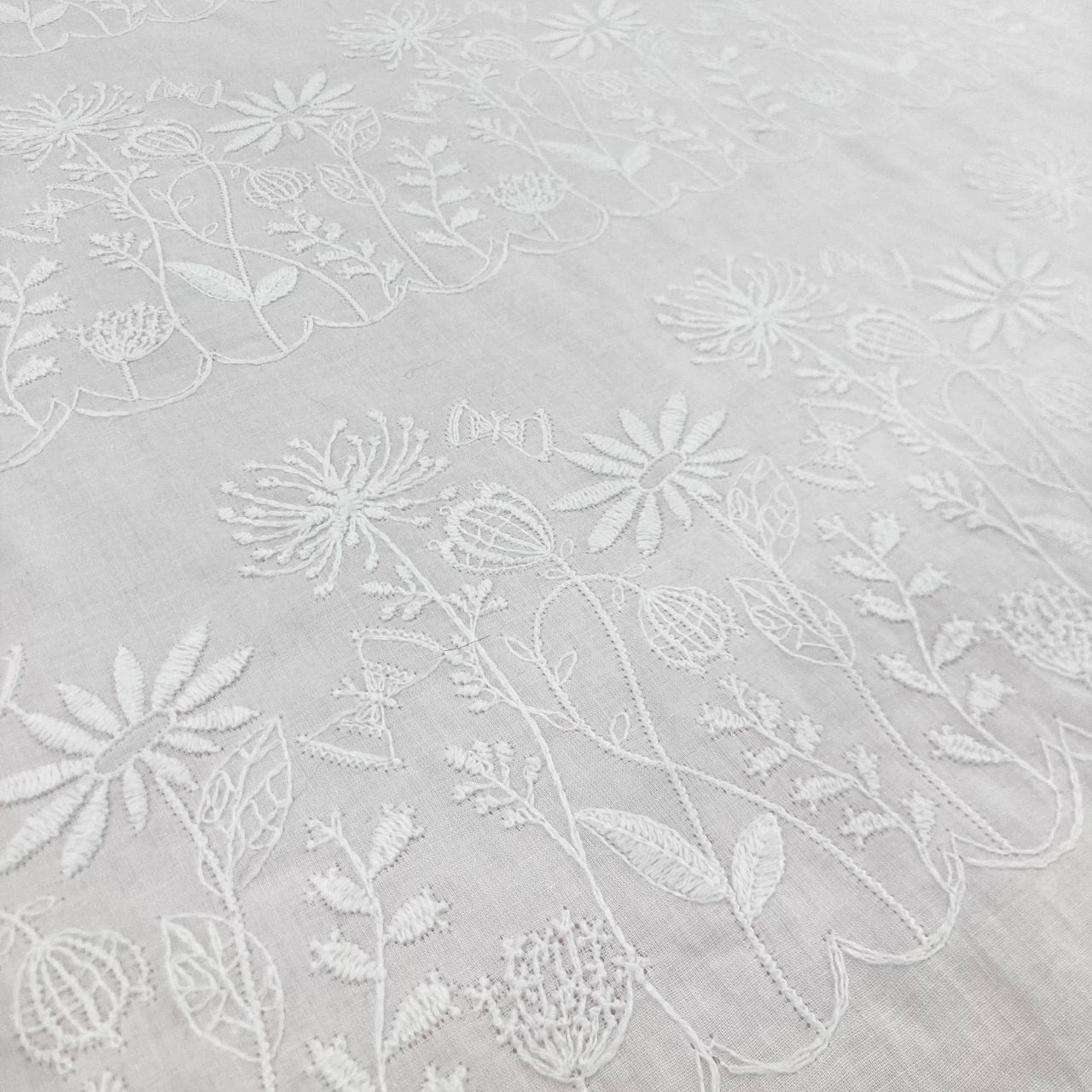 お花刺繍がかわいい♪綿レースで作ったサンプル作品を展示しております。