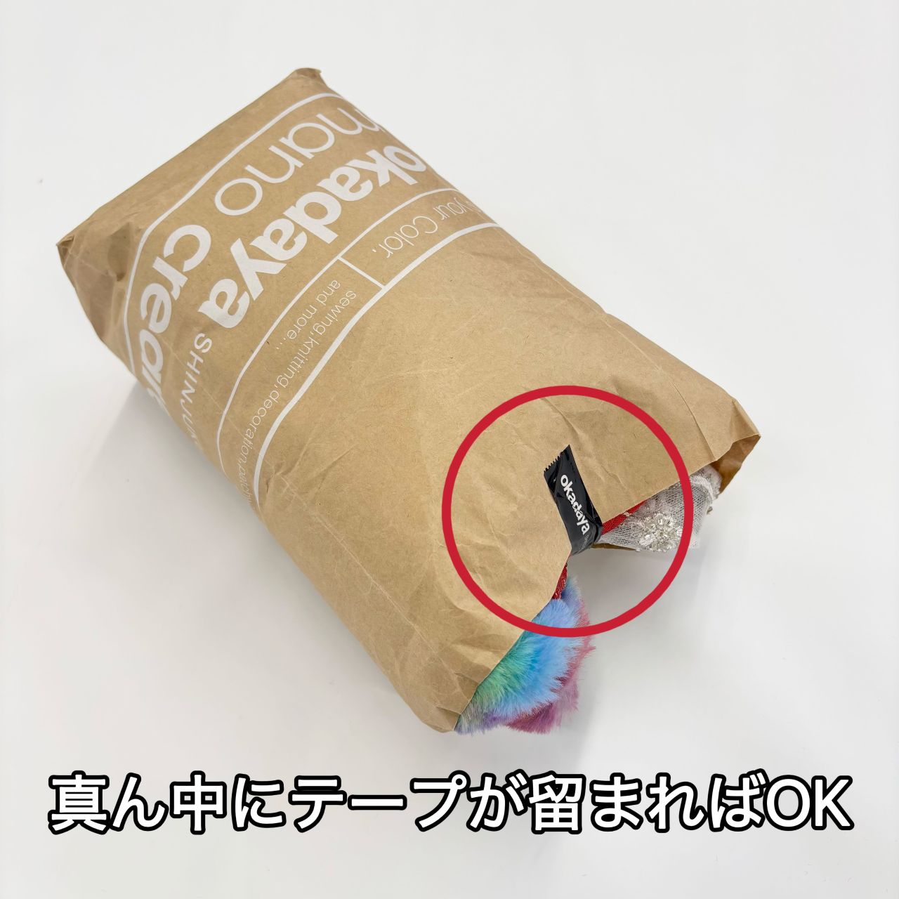 ハギレは袋の真ん中がテープで留まればOKです!
