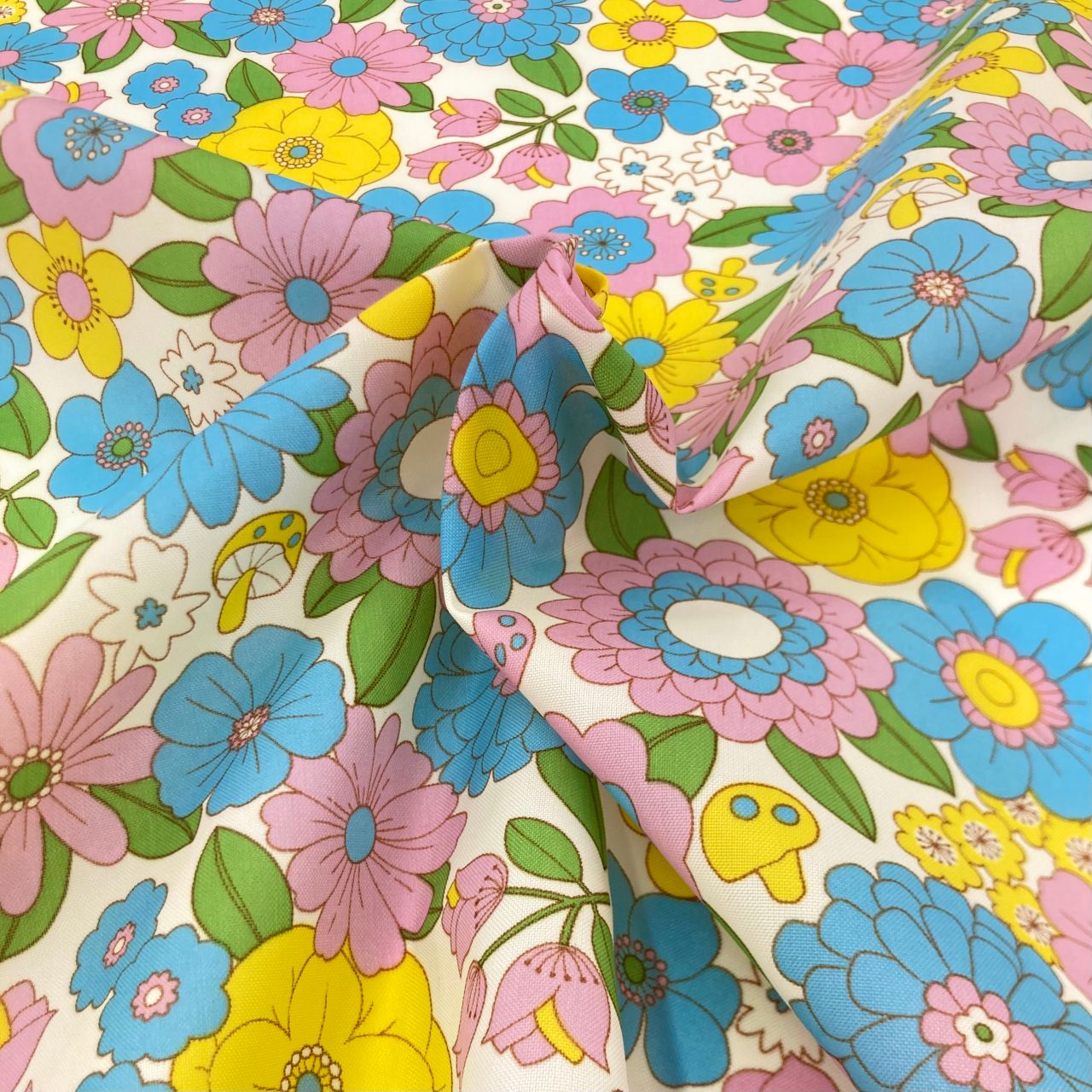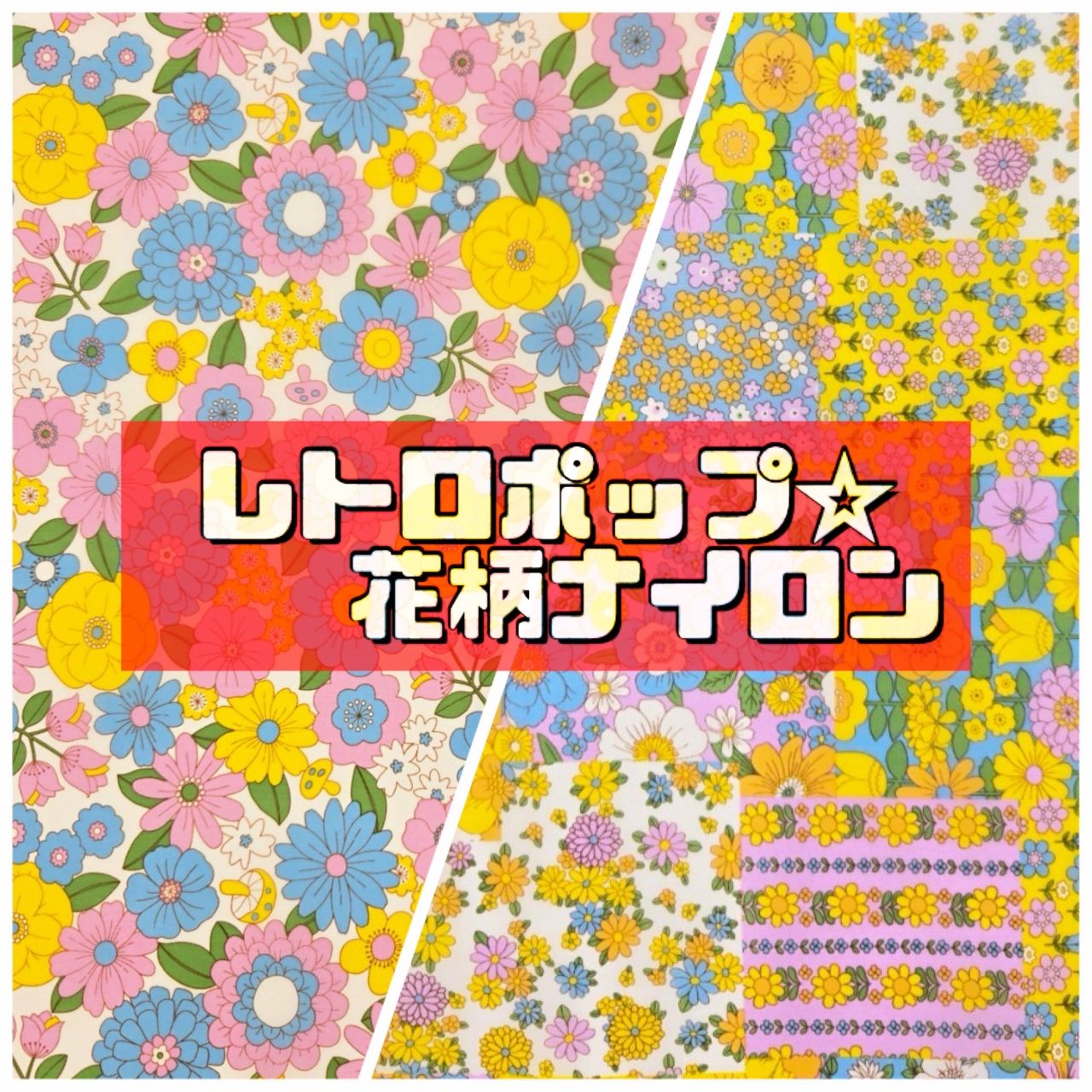 ナイロン生地にレトロかわいい花柄が2柄入荷いたしました。