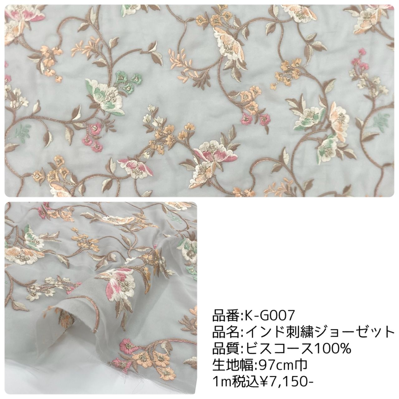 新商品でインド刺繍生地が入荷してまいりました。