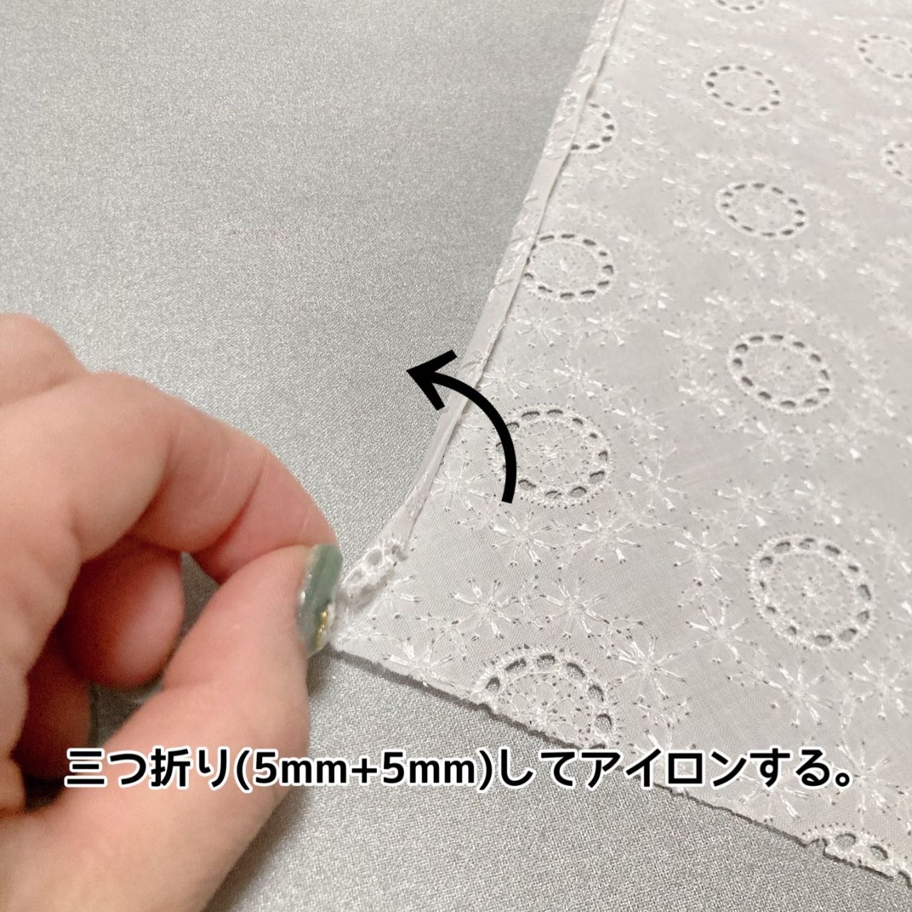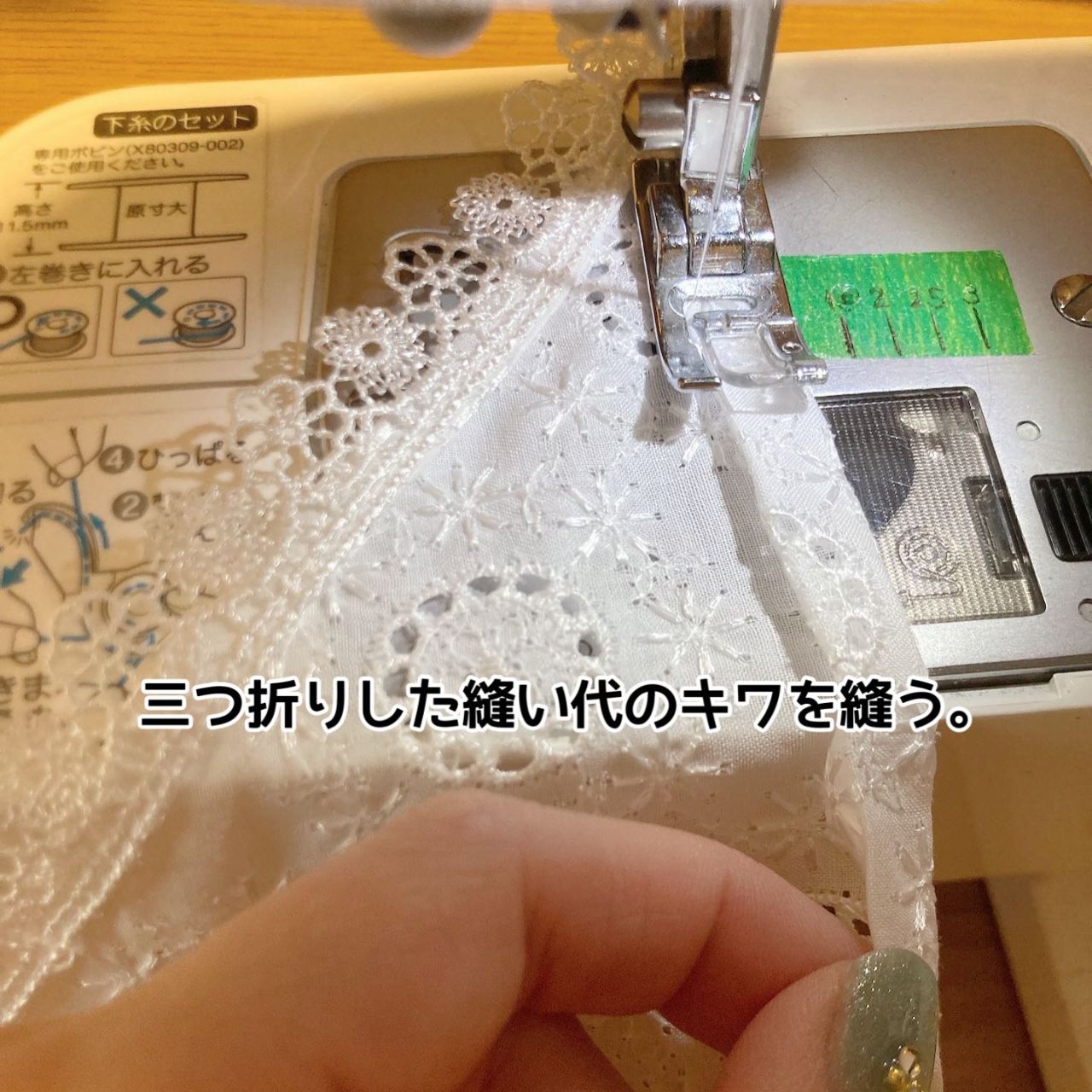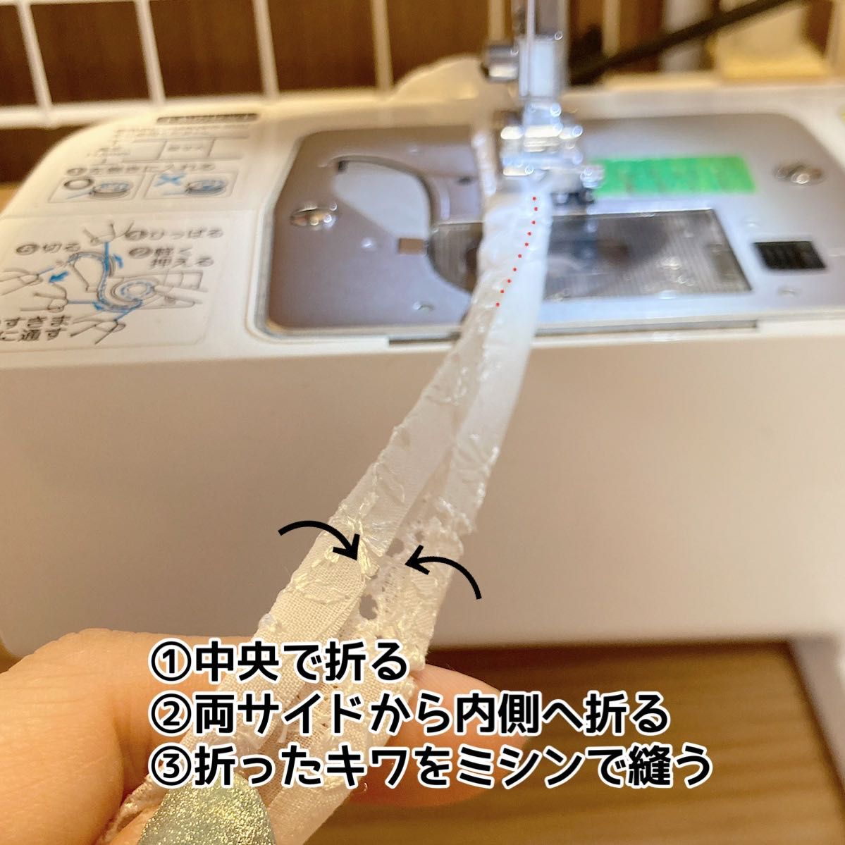 (4)先ほど(2)で折り目をつけていた部分を縫う。