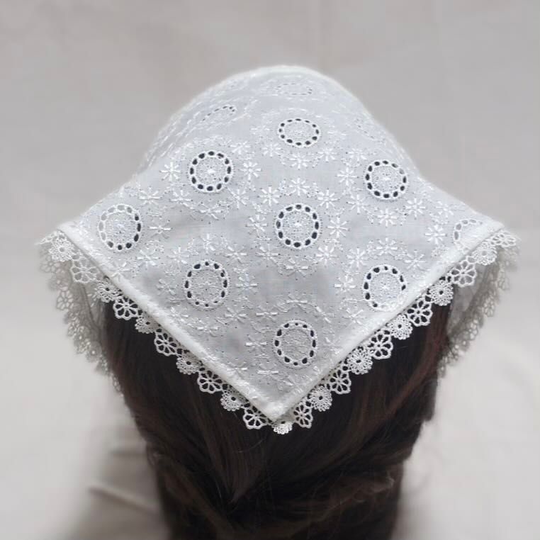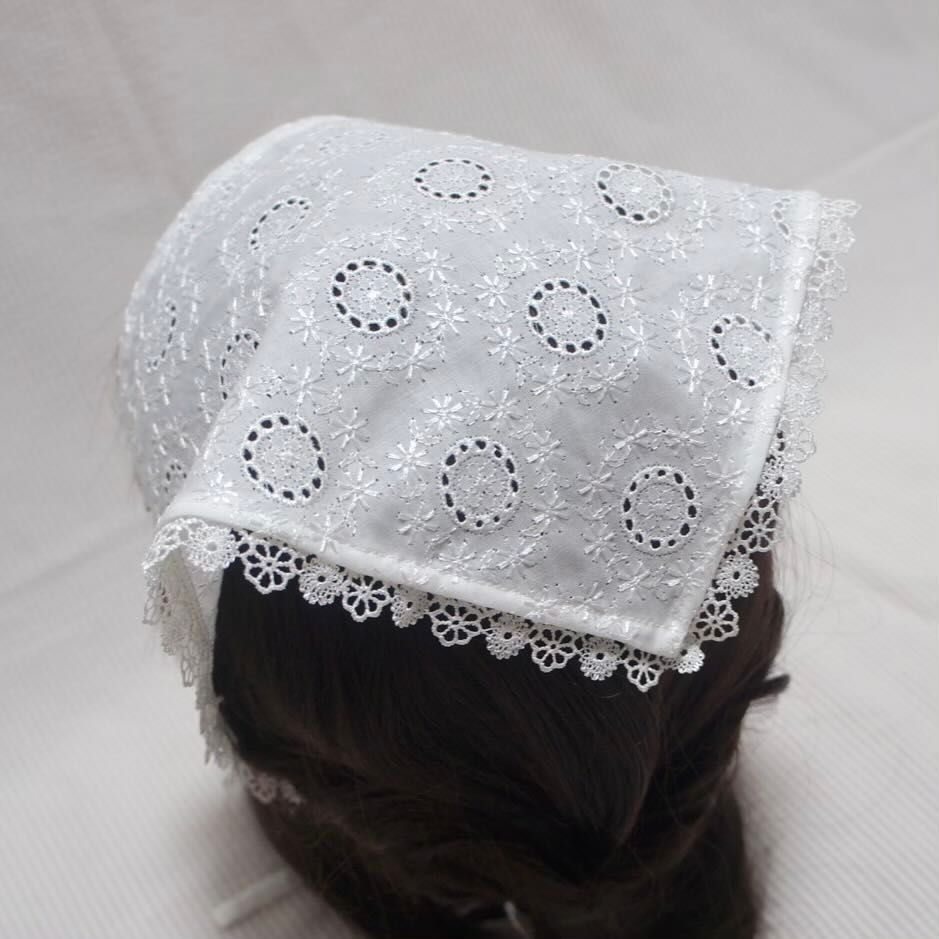 これからの季節に使える綿レースのバブーシュカの作り方をご紹介致します。