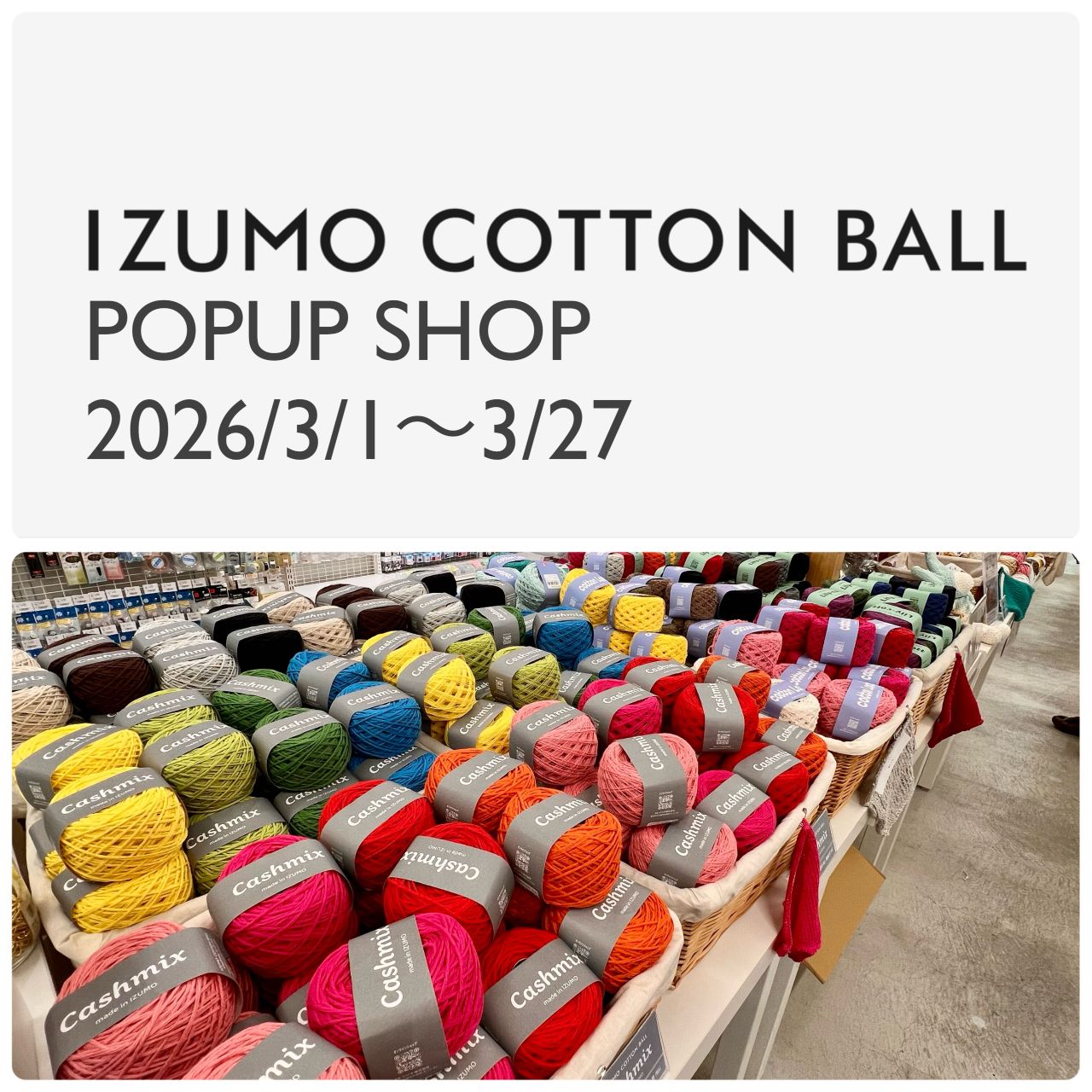 IZUMO COTTON BALL POPUPSHOPは3/27までの期間限定開催となっております!