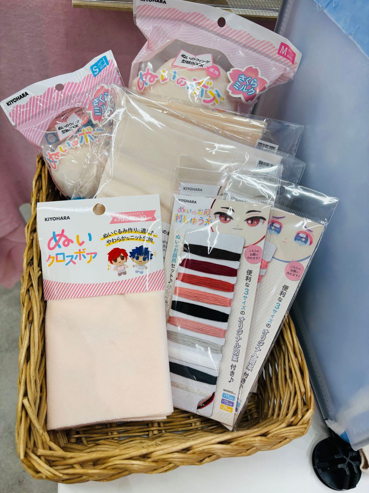 素体や人気のぬいクロス、顔のパーツを刺繍する時の刺繍糸セットなどをご用意いたしました!