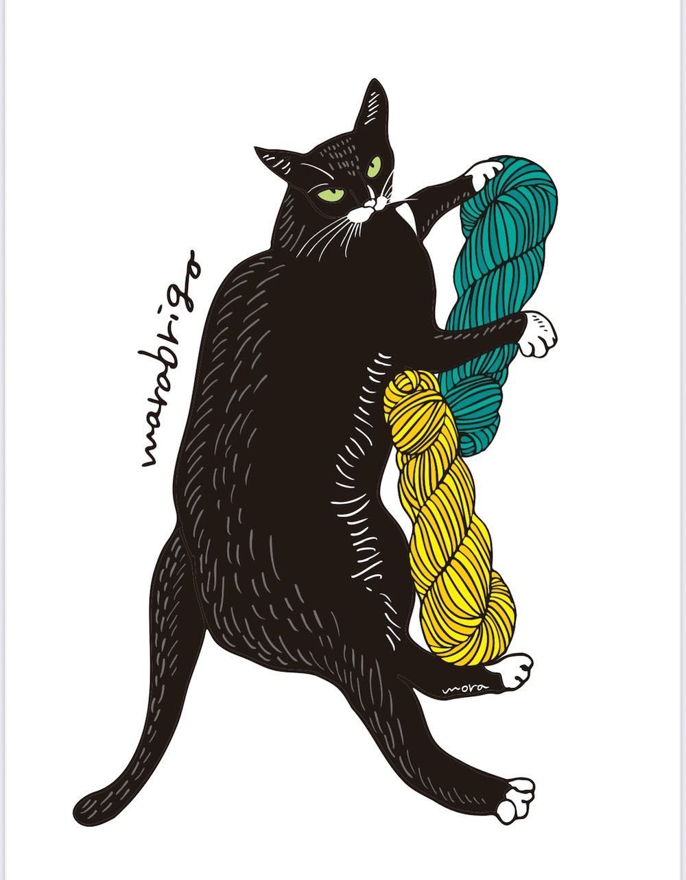 オシャレな猫ちゃんと毛糸のイラストが描かれた猫のMORAトートバッグ