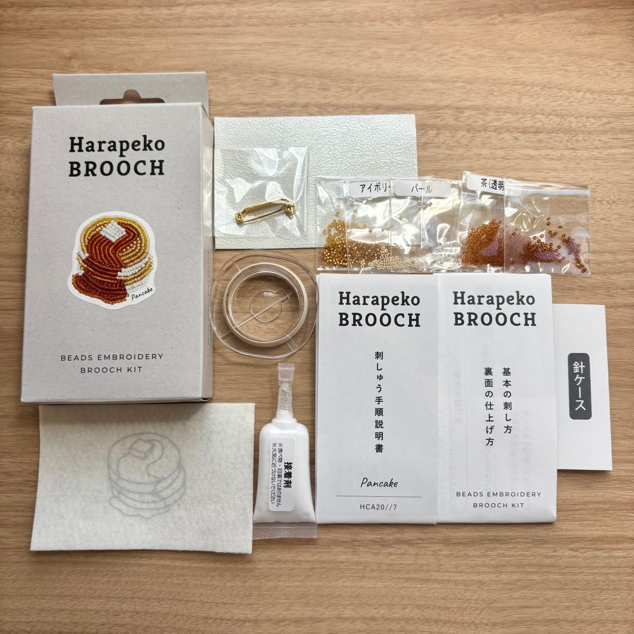 キットの中にビーズ、フェルト、裏布、ブローチピン、針、糸、接着剤が入っているのですぐに作り始めることが出来ます!!
