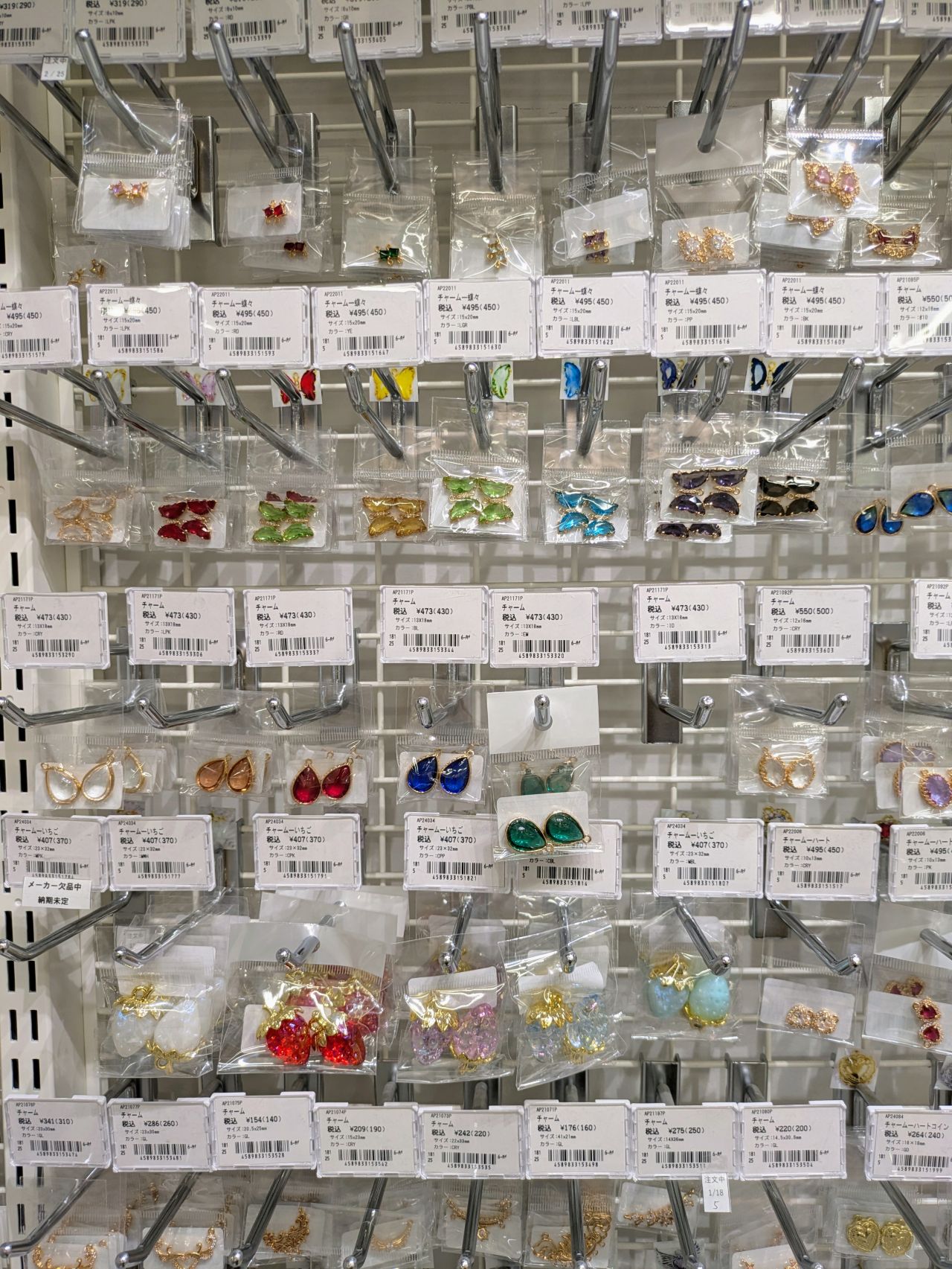 また、作品で使ったチャームは棚番13のお隣にに色々な種類を取り揃えております!
