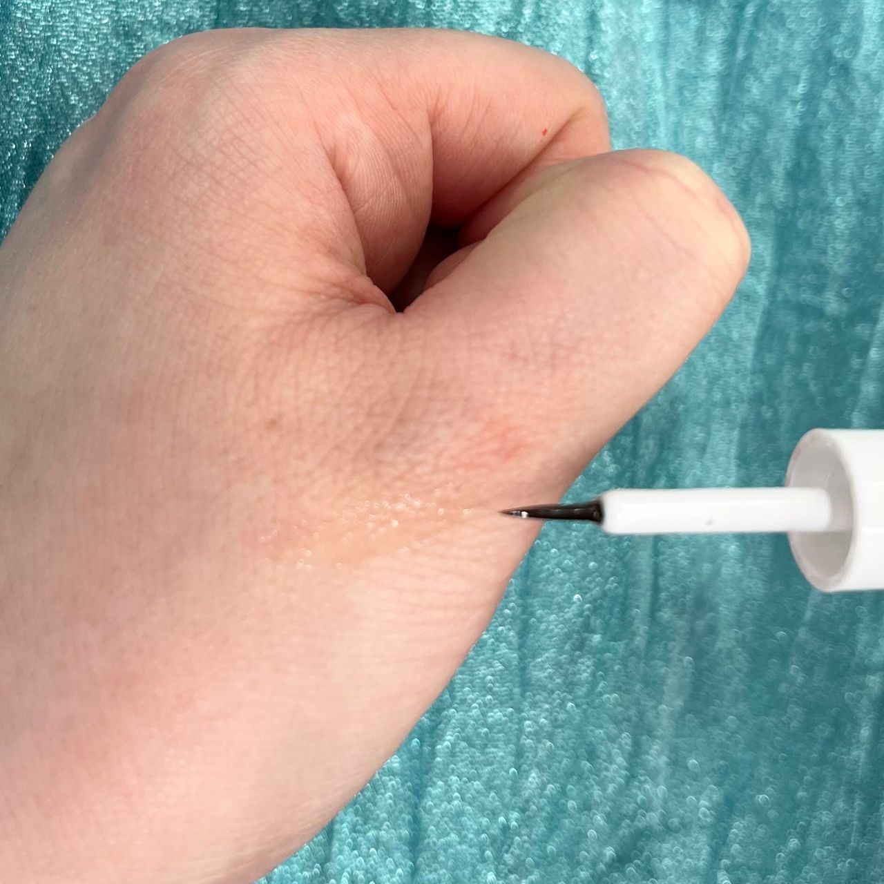 ④塗った部分を軽く指で触り、完全に乾いたか確認してから目を開けます!