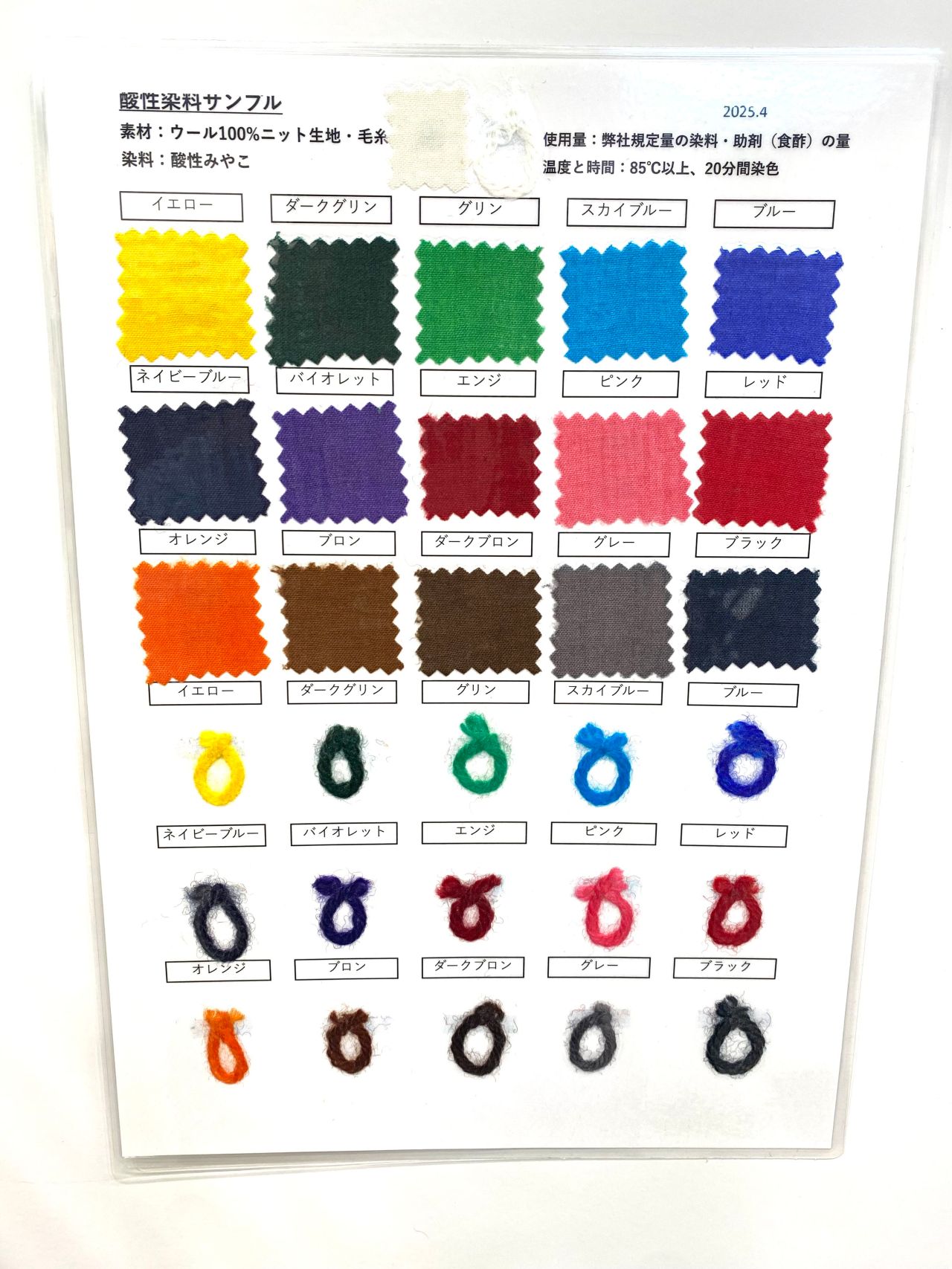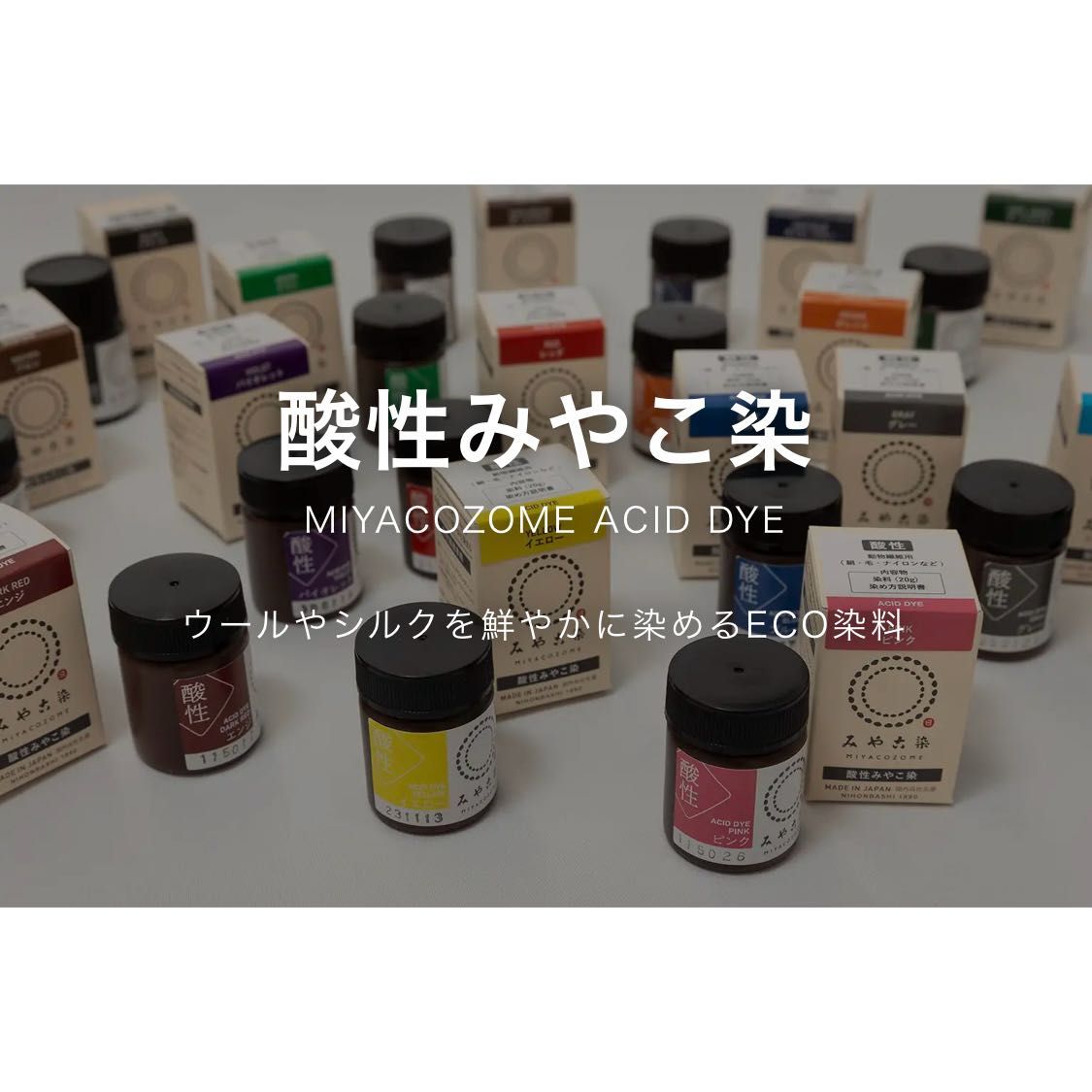 ウールやシルクなど動物性繊維用の高温染めECO染料。