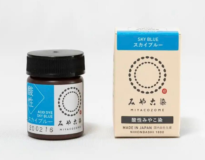 酸性染料のみで出来ている為、動物性の繊維と相性が良く、とても鮮やかに染まります。