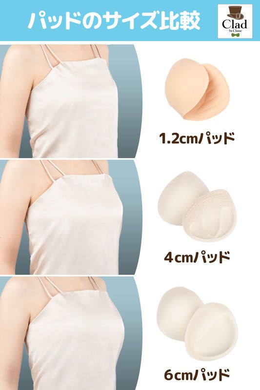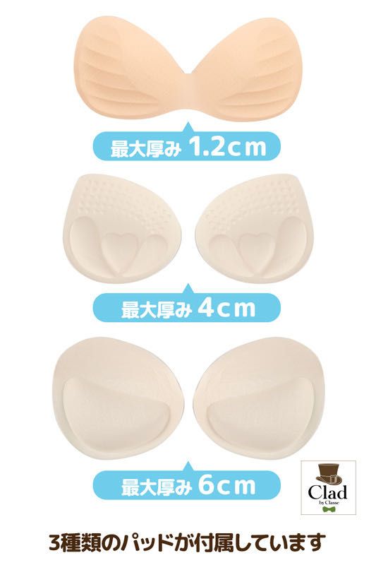 厚みの違う3サイズの付け替えパッドで、お好みのバストに調節していただけます♩