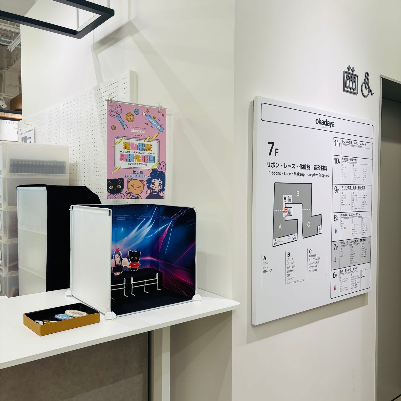 ぬい撮りスポットはエレベーター横にございますので、是非ぬいちゃんとご一緒に新宿オカダヤへ遊びに来て下さい♡