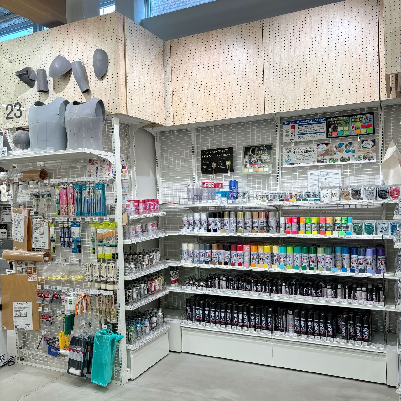 他にも塗料やスプレーのお取り扱いもございますので、7Fリボン・レース・化粧品・造形材料売場までお越しくださいませ!