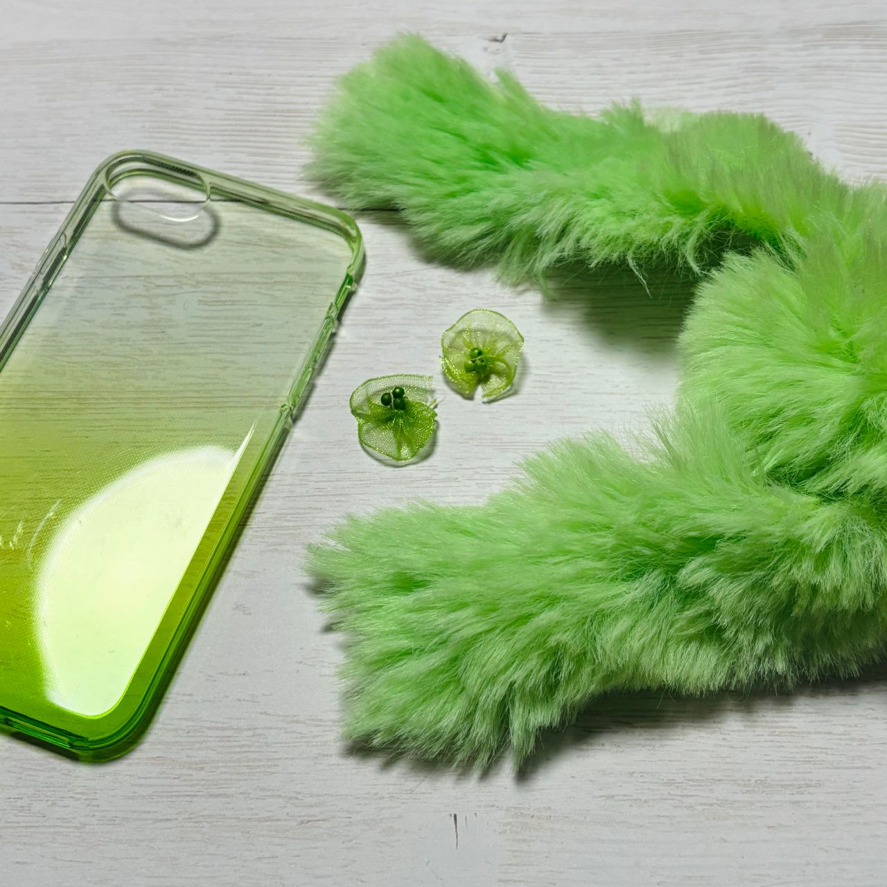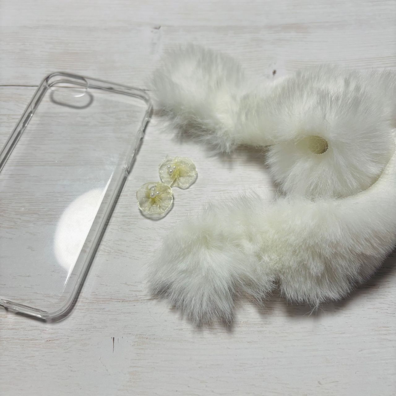 1つはファーと同じタイミングで取り出し、もう1つはスマホケースと同じタイミングで取り出したので、2つには15分程度の時間差があります