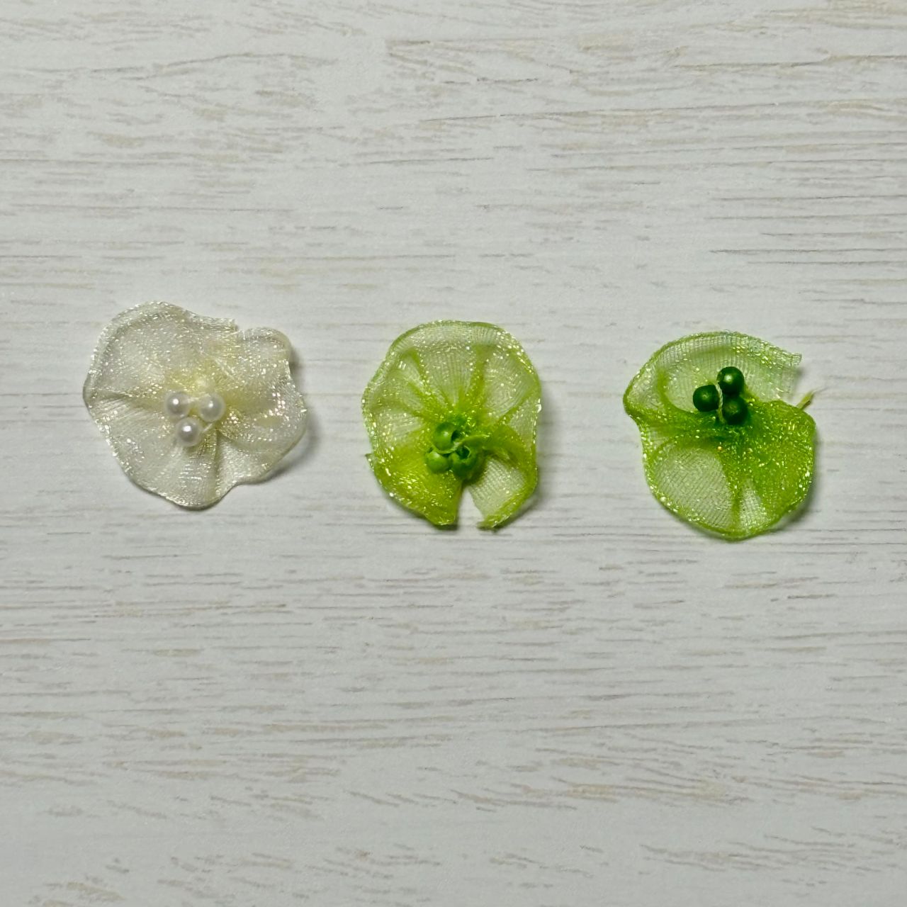 ▲モチーフ→花弁ナイロン、ビーズ部分→アクリル